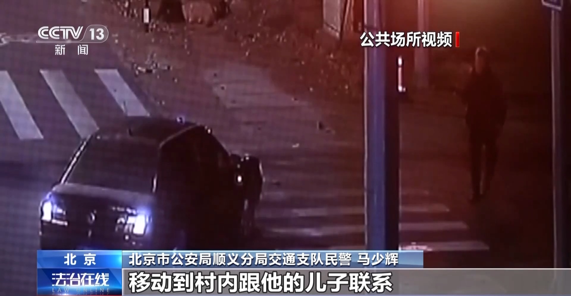北京市公安局顺义分局交通支队民警 马少辉:因为小轿车驾驶员是饮酒的状态,他也是害怕公安机关对他进行打击,因此他返回车内取走他的手机,移动到村内跟他的儿子联系。