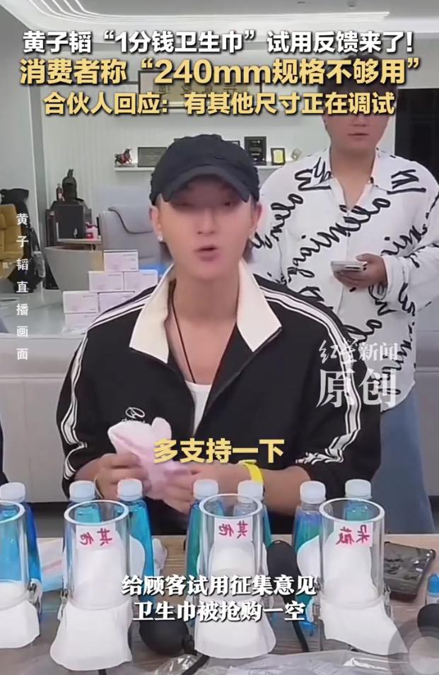 近日,歌手黄子韬在直播间以1分钱每单的价格上架了近5万单卫生巾给顾客试用征集意见,卫生巾被抢购一空。