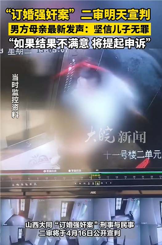山西大同“订婚强奸案”刑事与民事二审将于4月16日公开宣判。4月15日上午,大皖新闻记者联系上被告人席某某母亲郑女士,“我们坚信儿子是无罪的,所以一直都是做无罪辩护,这次二审宣判,希望法院能够作出公平公正的判决。”