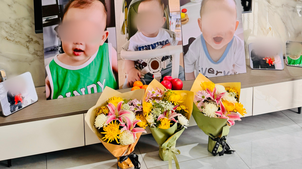 事发后,胡女士和爱人住进了儿子的婚房。家中摆放的日历永远停留在了10月2日这一天,再也无法翻到下一页。“这是我儿媳生前喝的水,我一直保留着,就像他们还会回来一样,我不舍得丢掉”。家中孙子的爬爬垫和小滑梯依旧在儿童房摆着,儿媳喜爱的手办被盖上了防尘布。
