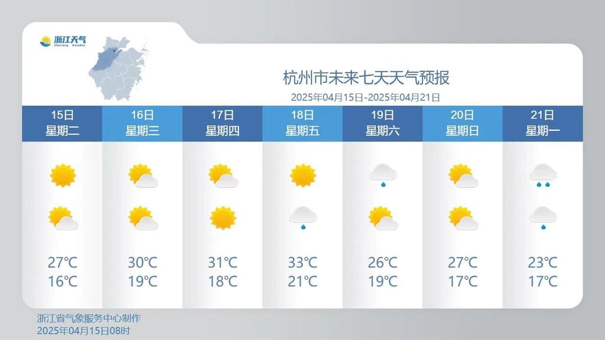 目前还在清明节气期间,而从常年来看,杭州平均入夏在5月16日,还有一个月左右的时间,现在就上演体验版夏天,太早了些。