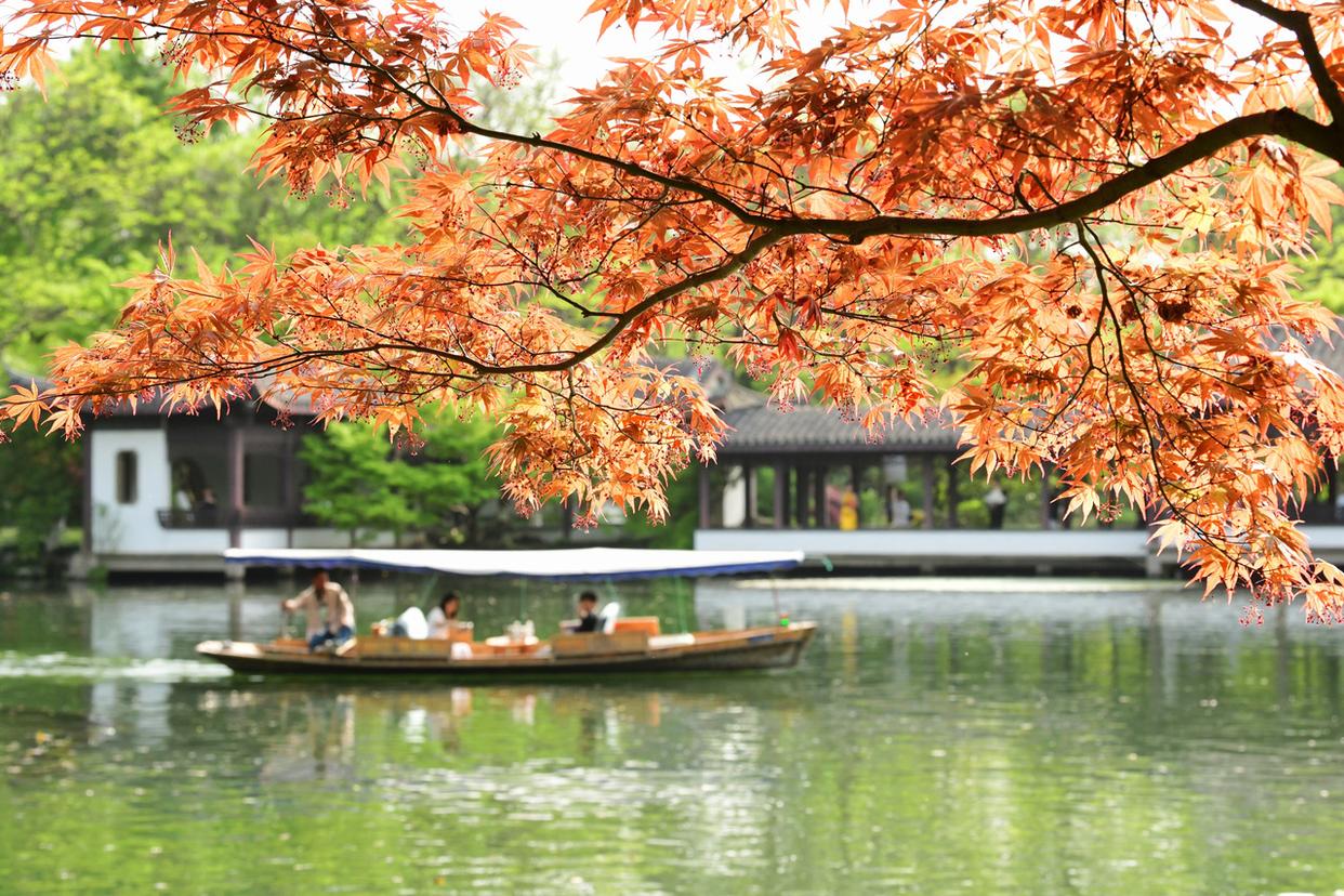 杭州曲院风荷景区,枫(鸡爪槭)叶红了。里尔 摄