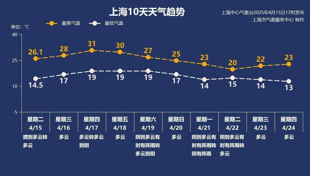 周四周五延续多云为主的好天气,30℃以上的区域将覆盖到上海,夏日体感再现。