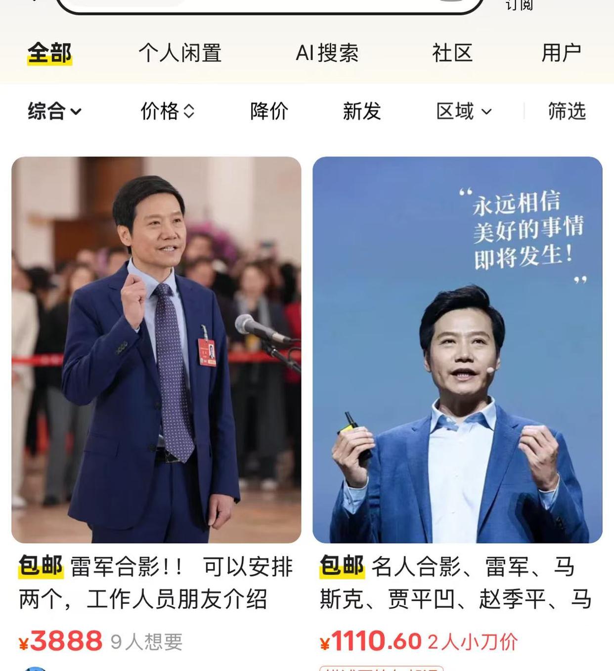 粉丝经济为这类交易提供了温床。数据显示,肖战、王一博等明星的签名照在闲鱼曾炒至5000元每张。卖家往往利用粉丝“为爱付费”的心理,将非官方周边包装成稀缺资源。而雷军等企业家在互联网时代完成了从企业家到顶流网红的跳跃,其握手、签名乃至合影资格都被商业化包装,与雷军等企业家同框既成为身份的象征,也成为一些人包装自己的资本。