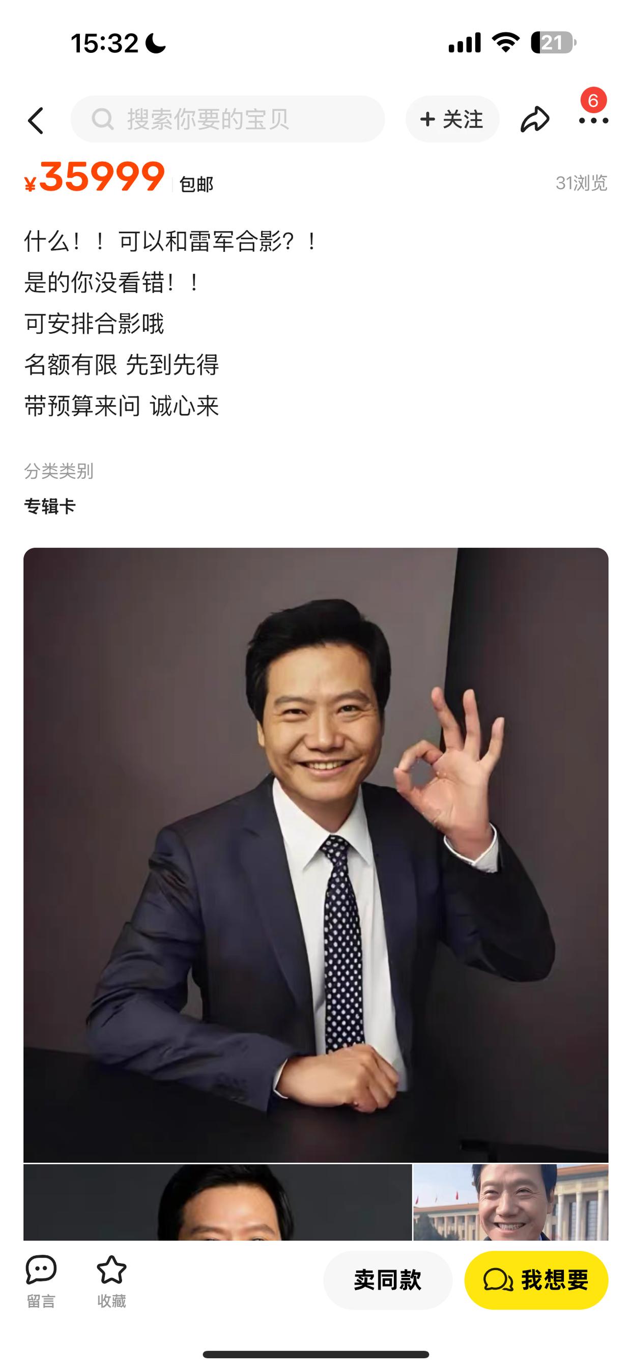 读特新闻记者联系了一位声称可安排雷军合影的卖家了解情况,该卖家在二手交易平台上将“与雷军合影”标价为35999元,在记者咨询后,该卖家引导记者添加了其私人微信。