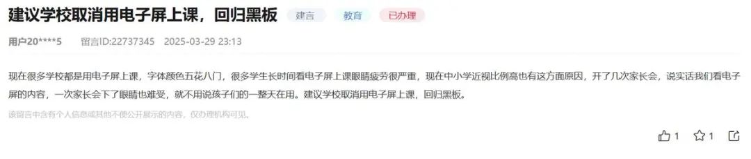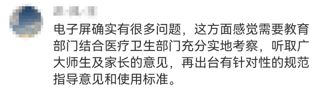 有网友认为应该取消电子屏教学,“对视力有害无益”。