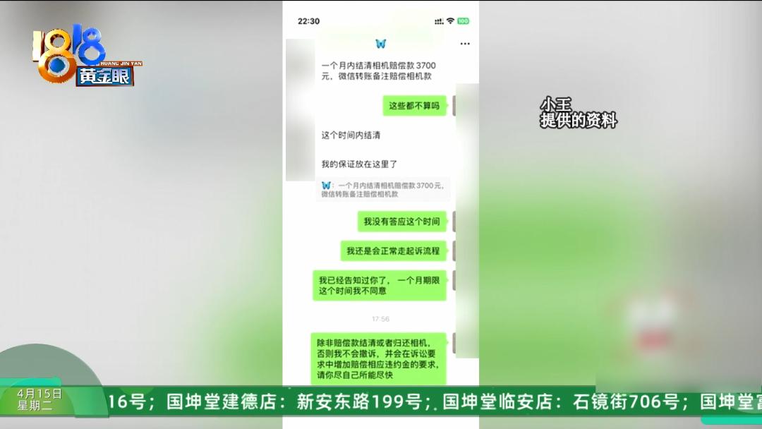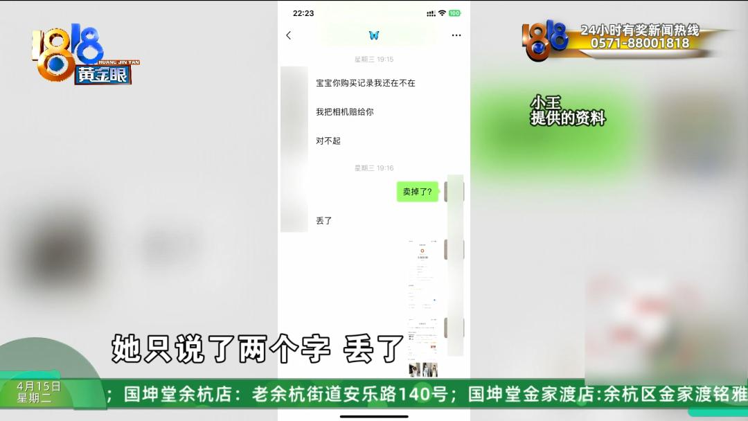 小王:我就去微信上去询问了她,我的相机是不是还在你那边,可以拍个照片给我看吗?她只说了两个字“丢了”。一个正常租借相机的人,她弄丢了的话,肯定第一是来告诉我们相机弄丢了要怎么赔偿,以及第一时间给到这个赔偿,对吧?但是现在她就是,我们想要去质问她的时候,她好像没有办法再维持这个谎言的情况下,才和我们说丢了。