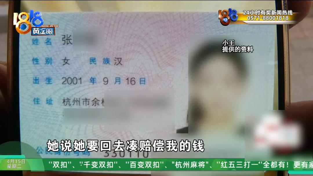 其他出租人 小张:她说她会原价赔偿给我的,因为有些配件加在一起了,她说她要回去凑赔偿我的钱,然后说(4月)6号之前一定会赔偿给我的。