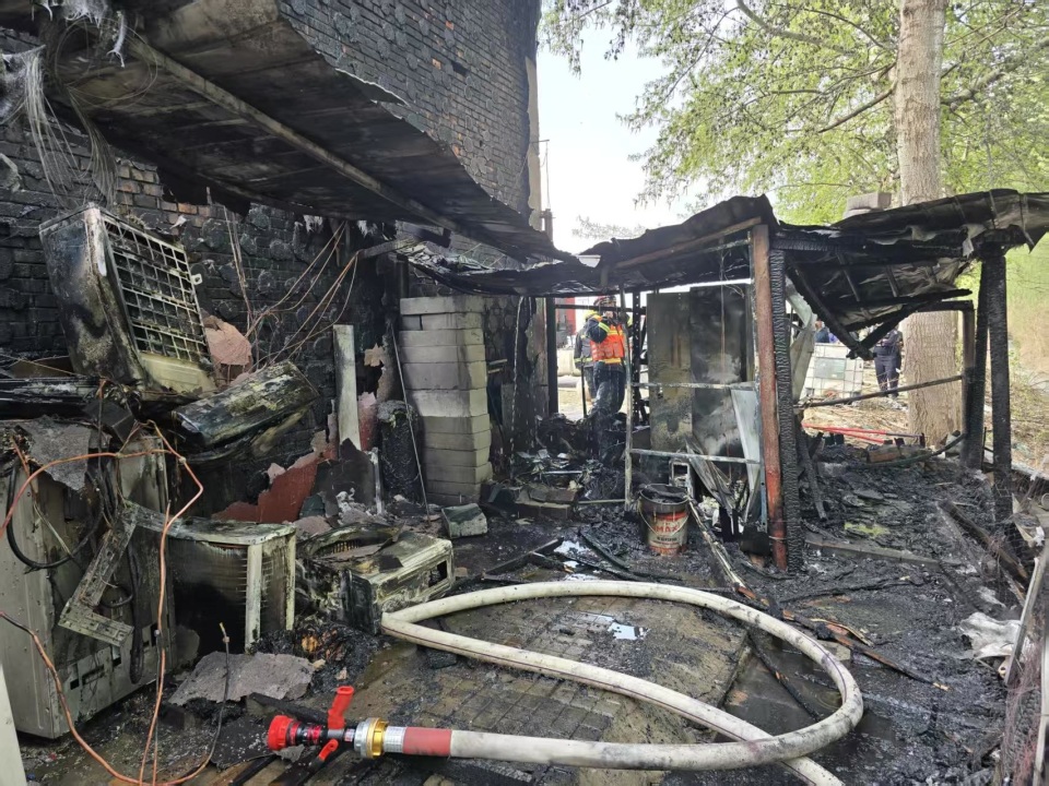 此次火灾过火面积5平方米,无人员被困伤亡。为防止火灾复燃,消防救援队员们又对简易棚内未烧完的纸壳、家具进行了湿化。