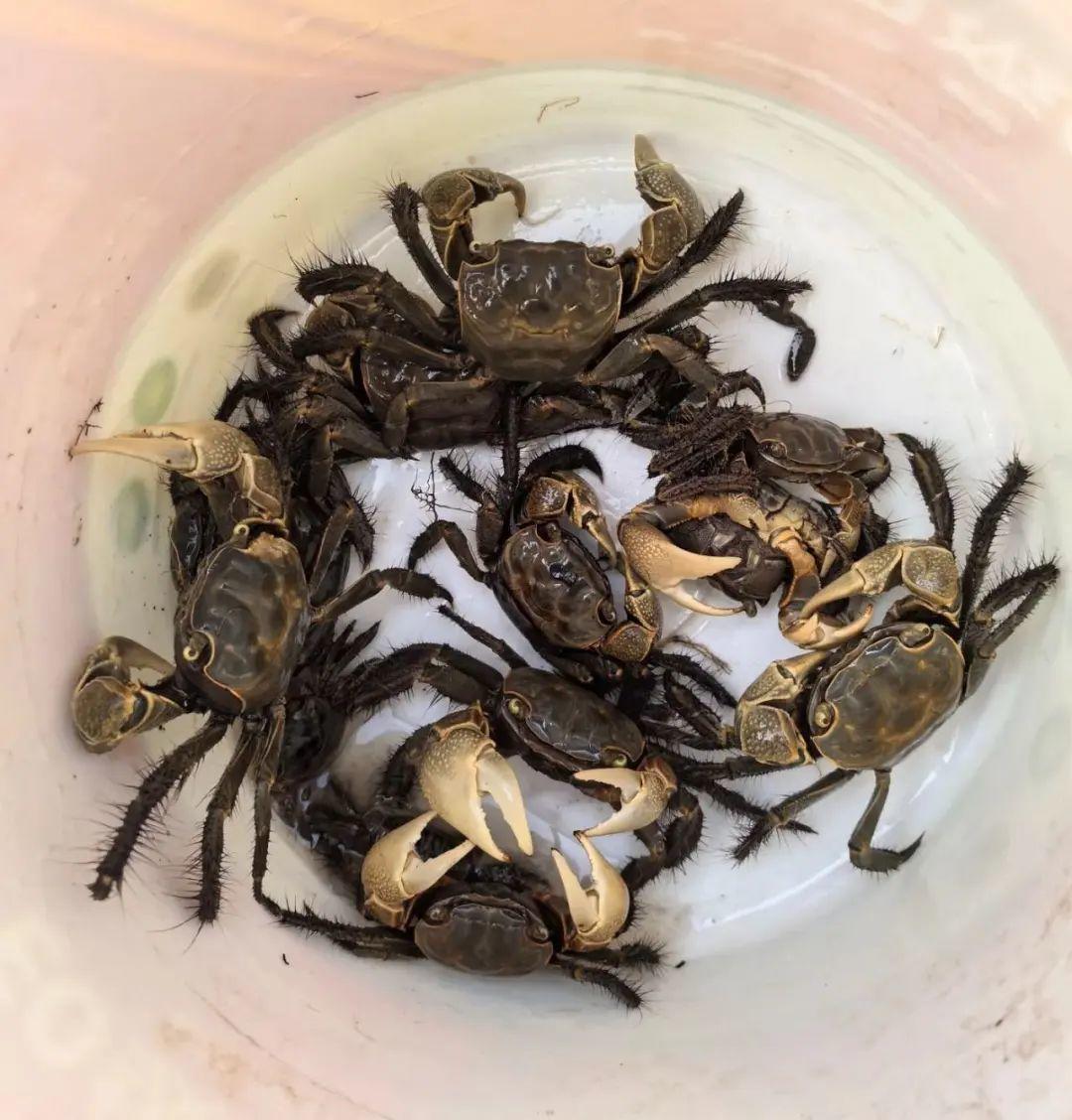 几个小时下来,他们一共抓到8只大大小小的螃蟹,数量不算多。“可能季节还没到,螃蟹都躲在洞里不出来,要费老大劲挖。”