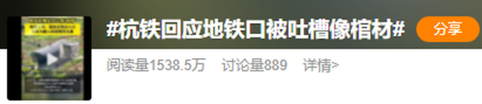 浙江杭州创景路地铁站的出入口因其独特的外观设计引发网友热议,有网友形容其“像棺材一样”。相关话题冲上微博热搜。