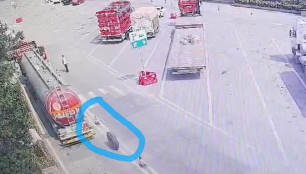 据红星新闻此前报道,近日,网传重庆永川服务区发生一起事故,一名人员在服务区内被高速上一半挂牵引车掉落的轮胎撞倒致死。网传道路视频显示,事发时间为2025年4月10日14点50分许,一辆红色半挂牵引车正逐渐减速停在路边,其车身左边有一轮胎在高速公路上向前滚动。该监控视频还显示,事发地点为重庆G85银昆高速外场沿线永川至双石。另一网传监控视频显示,轮胎滚进服务区内,将一名站在半挂牵引车旁的人员撞倒。
