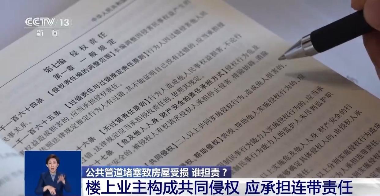 浙江省安吉县人民法院法官 梁赟:楼上的业主就是说,我正常在使用管道,我没有向里面扔过这种不可以溶解的纸巾、湿巾。你现在603和503的业主来起诉我们,你也没有办法说出来到底是哪一个哪一户人家,哪个人来实施的行为导致了堵塞,所以他们觉得是原告没有尽到举证的义务。
