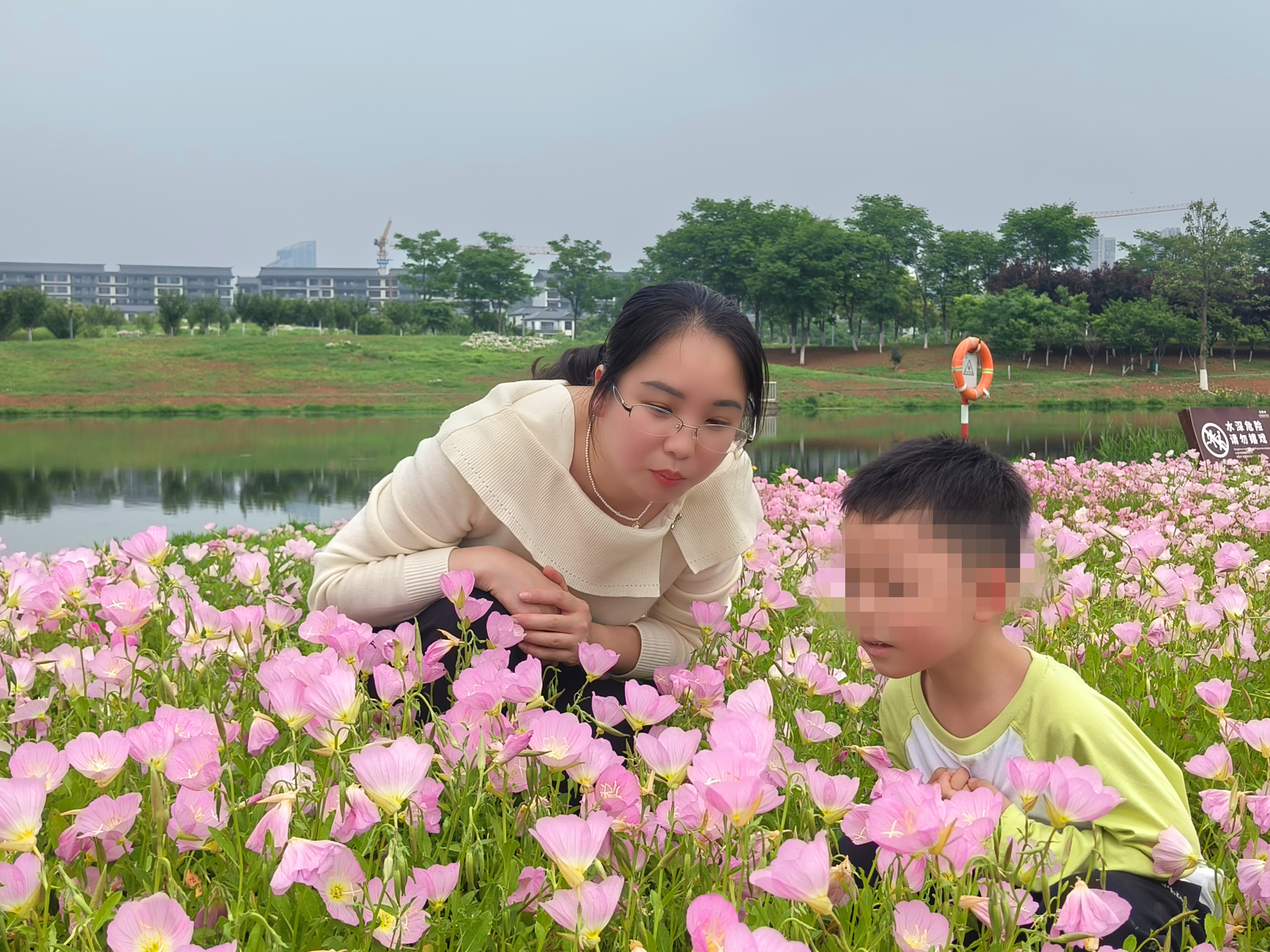 △市民曾女士和孩子在公园。图/史继超摄