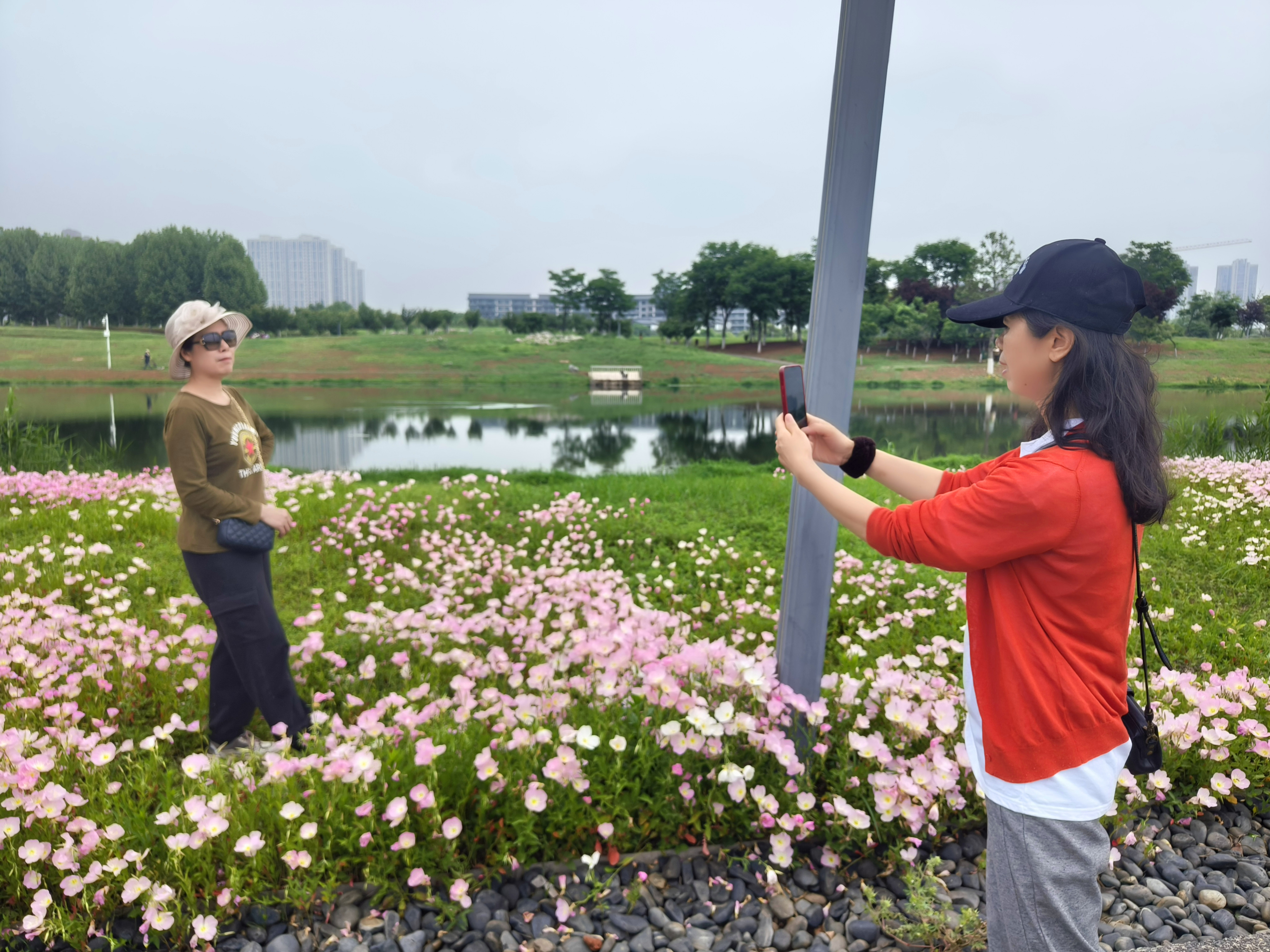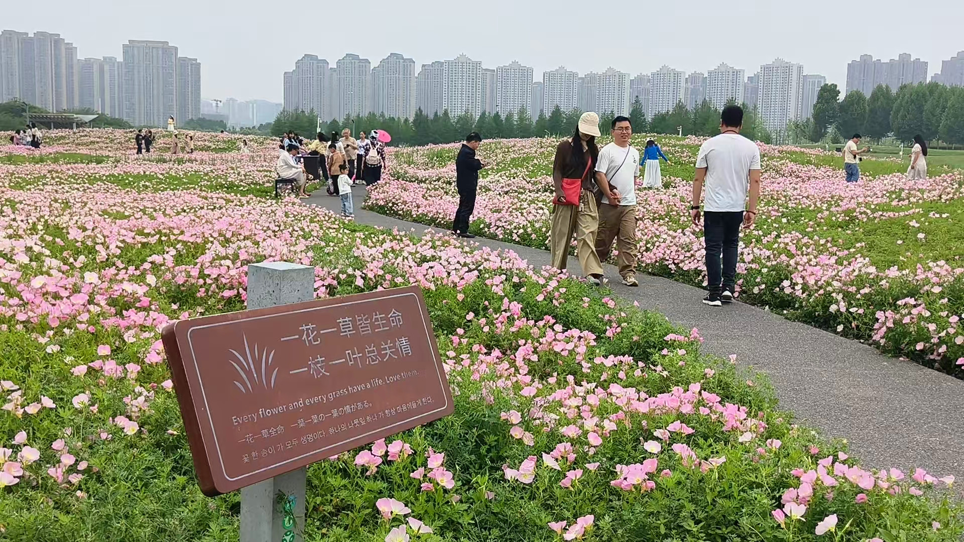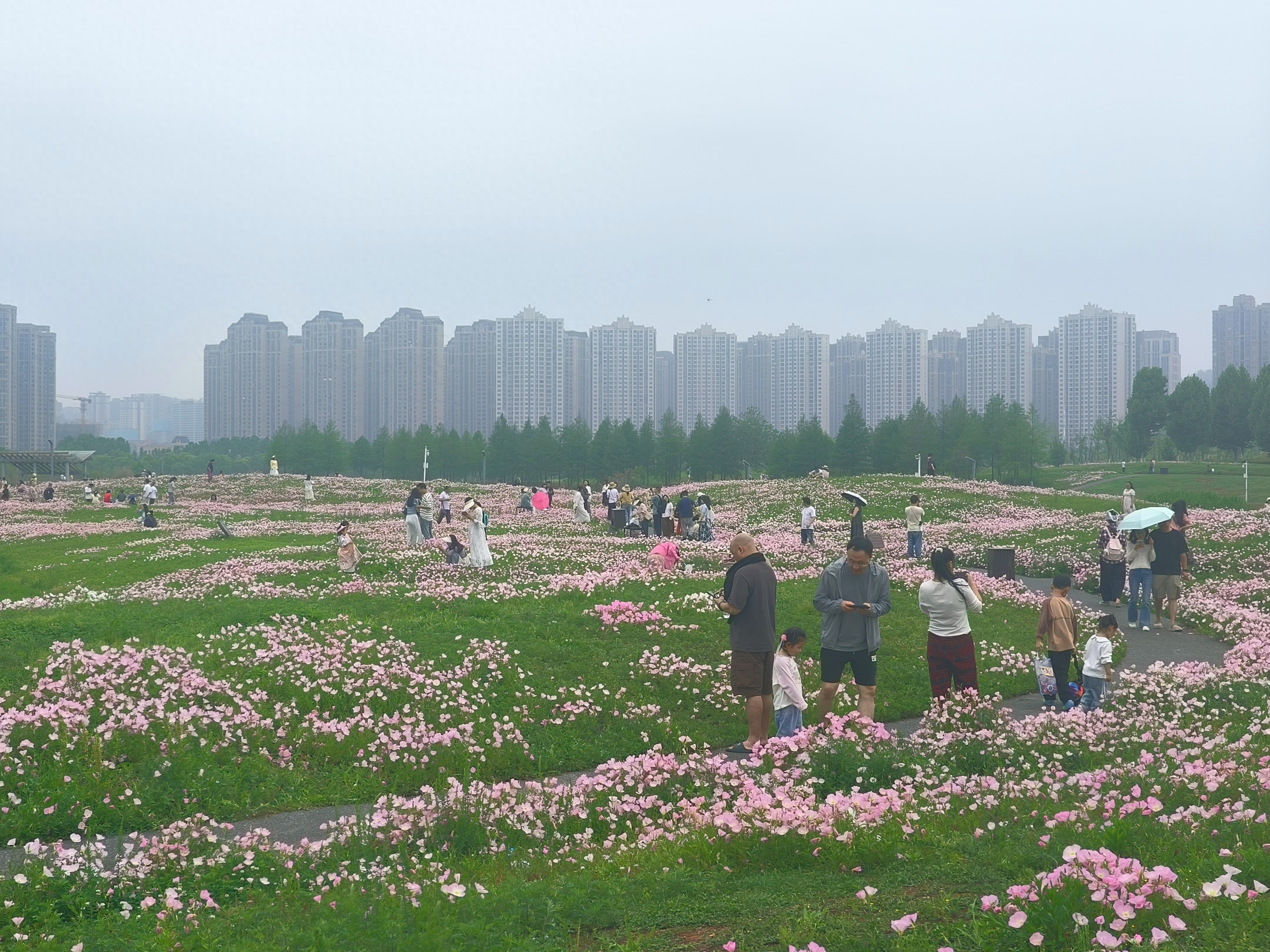 记者于4月20日中午12点左右到达该湿地公园,尽管是午餐时间,但正值周末,记者看到在月见草所在的花海区,至少有上百名游人在此拍摄、留念。