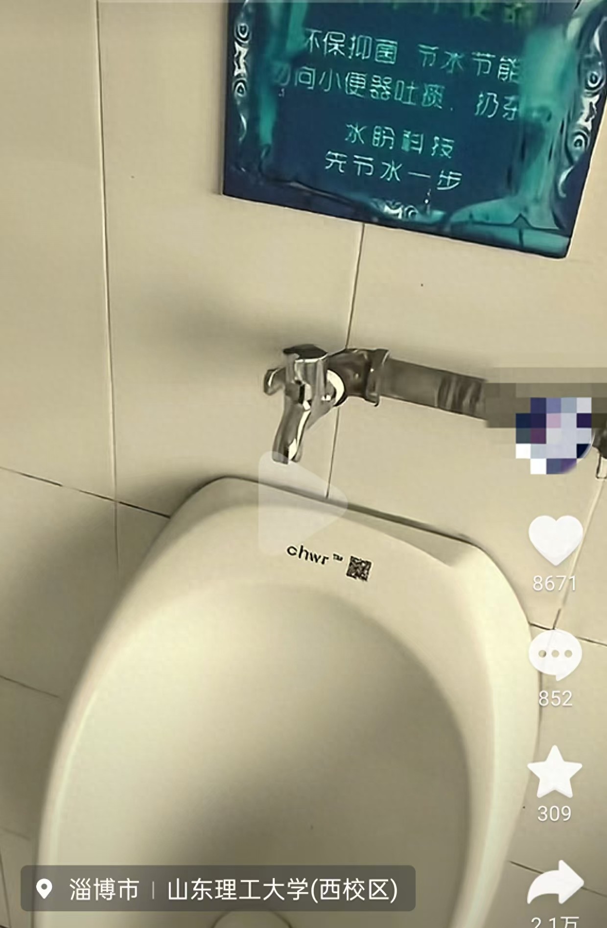 近日有网友发视频称,其所在山东理工大学一男士小便池紧上方存在可以出水的水龙头。对此,有其他网友调侃:“像论文的创新点一样”“完美解决了洗手时不能顺便嘘嘘的世纪难题”……