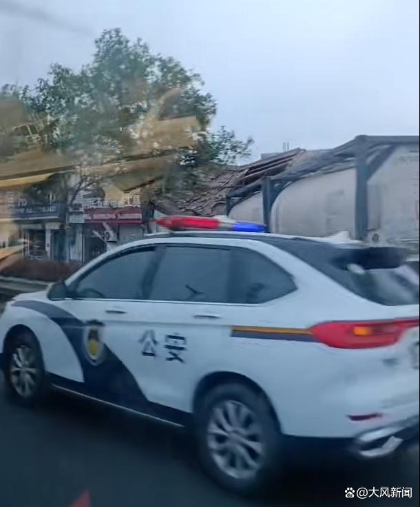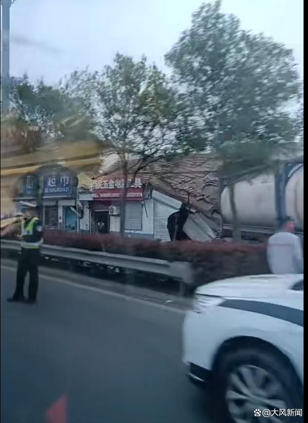 现场视频显示,路边的门面房严重受损,现场停有多辆警车,有交警在维持秩序,有多人在围观。