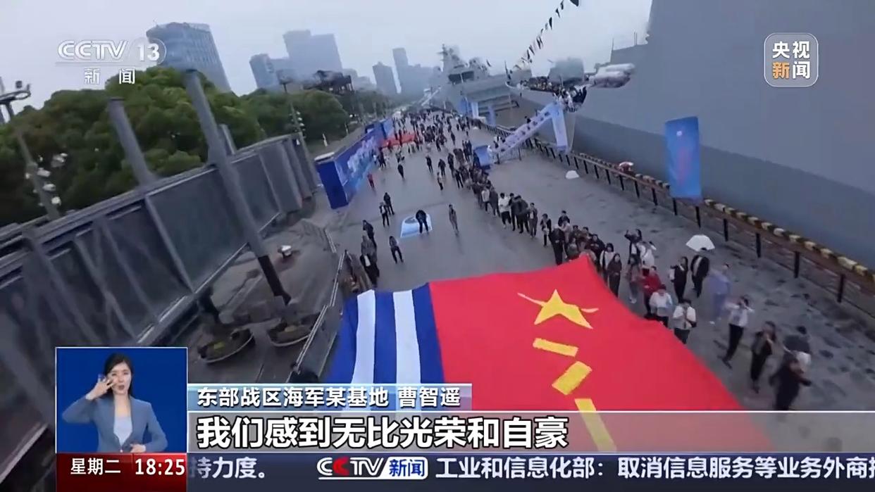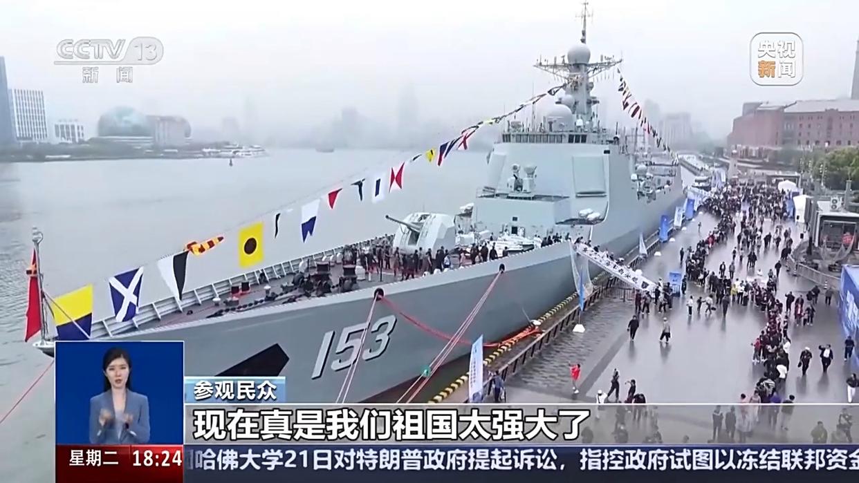 参观民众:在这个现场,兴奋的心情难以言表。我这个老海军,在部队也服役了28年,我感到很振奋,对比我们以前海军的装备,现在真是我们祖国太强大了,我们海军太强大了,为他们高兴,为他们点赞。