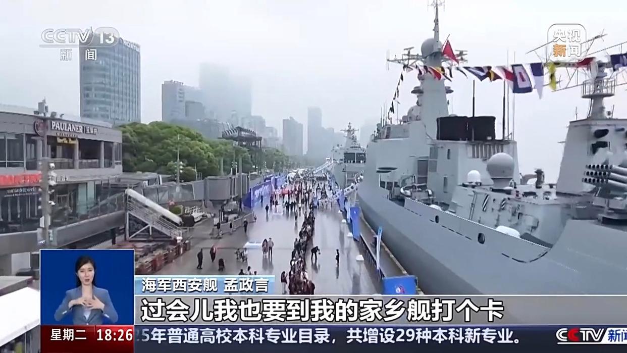 东部战区海军某基地 曹智遥:去年同一时间,同一地点,海军“和平方舟号”医院船和海军淄博舰曾首次停靠上海国客中心运码头,当时两万余市民和我们一起见证了人民海军的建设发展。今年,又迎来了西安舰和沂蒙山舰的首次开放,跨越千重浪,迎来四海宾,作为驻沪部队官兵的一员,我们感到无比光荣和自豪。