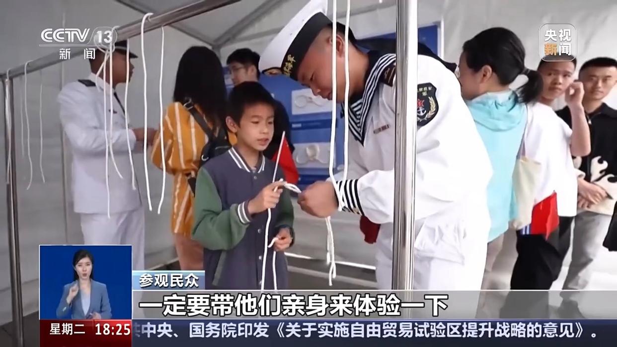 参观民众:我觉得国防教育从娃娃抓起,作为家长我们除了日常给他科普一些海军知识,国防知识外,像这样的活动一定要带他们亲身来体验一下,海军节开放日活动的体验感、参与感真的挺好的。