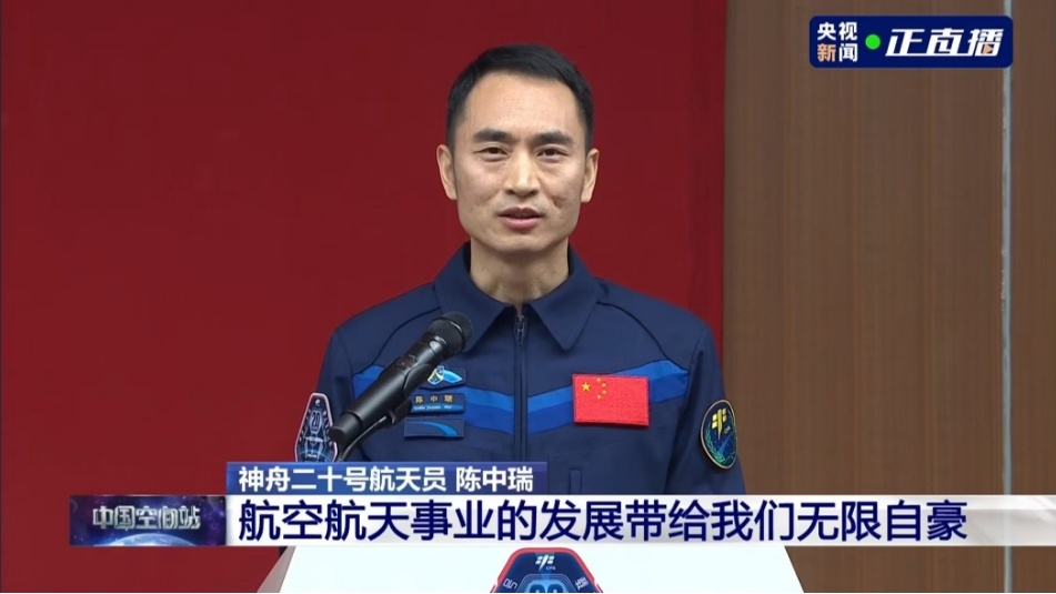 神舟二十号航天员陈中瑞:说实话,刚开始一起训练的时候,还是有些紧张的,也有压力,毕竟指令长已经是第三次飞行了。现在,我们融合得就像一个人,达到了1+1+1=1的状态。