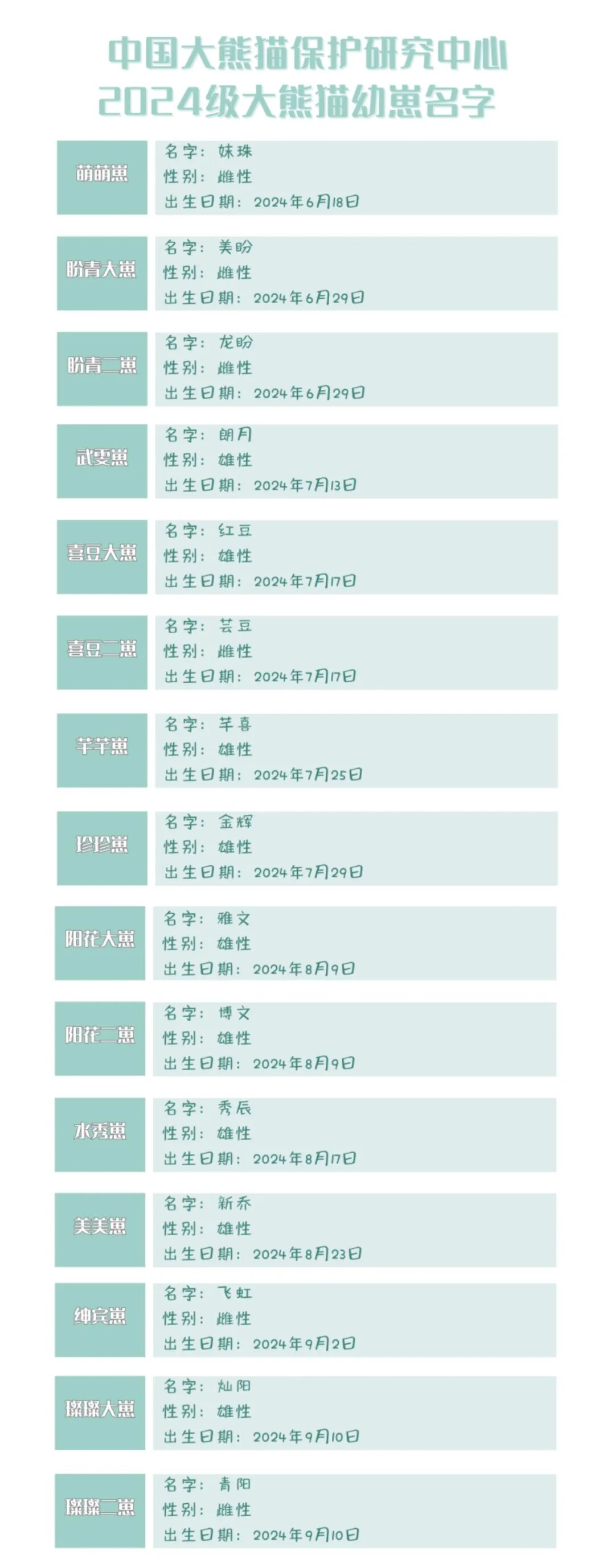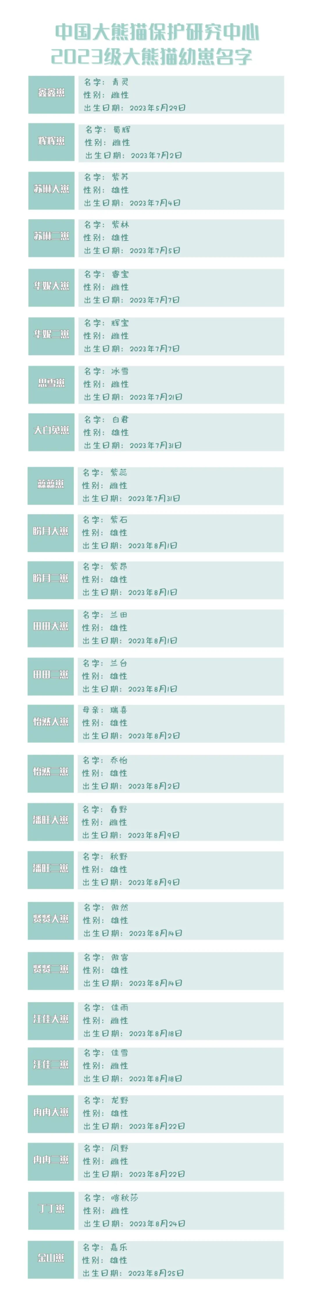 辉宝、红豆、飞虹……熊猫中心2023级、2024级幼崽名字公布!