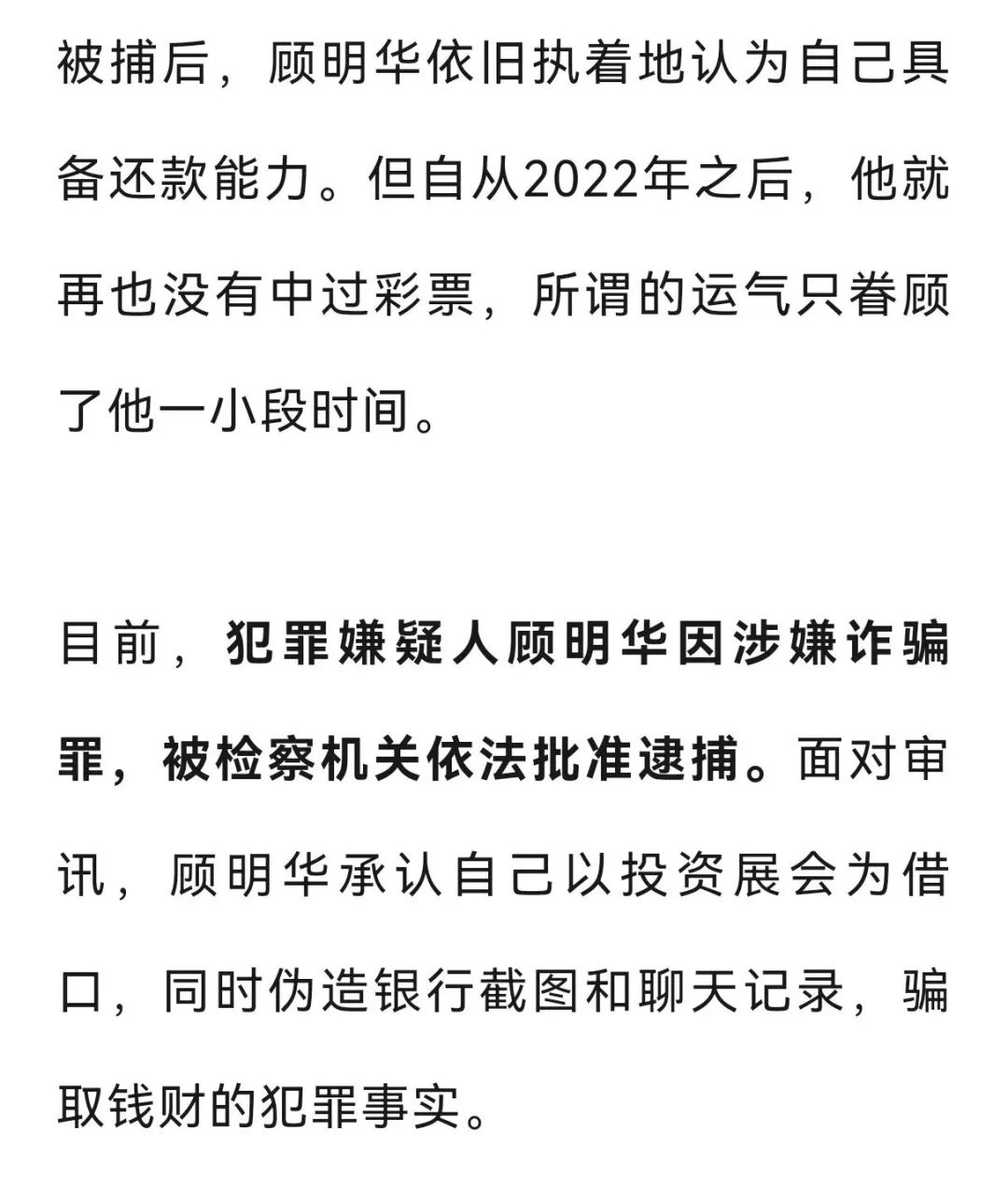 前后两套房子换来的近两千万,的确让顾明华的财务状况有所好转。顾明华自己也做起了一些小生意,开始有了收入。与此同时顾明华开始斥巨资购买彩票,2022年他中了近800万元彩票。