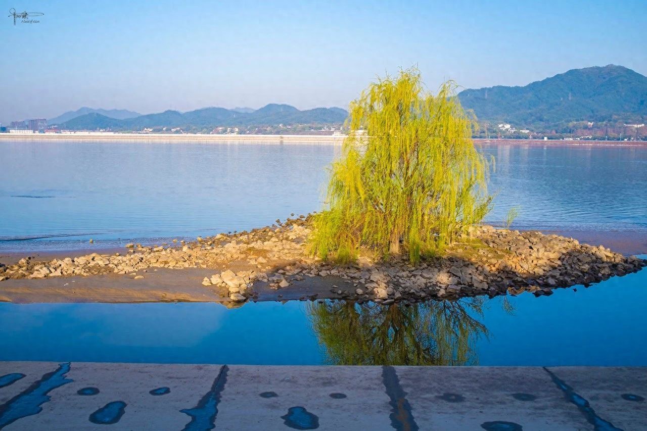 “垂柳依依荡漾于水中,是钱塘江中别具一格的风景。”阿陆说,这棵柳树孤零零地伫立在江水中央一处滩涂上,有一种质朴且动人的美感。