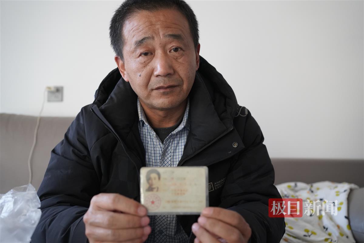 李杰手持疑似被冒用的身份证(极目新闻记者 摄)