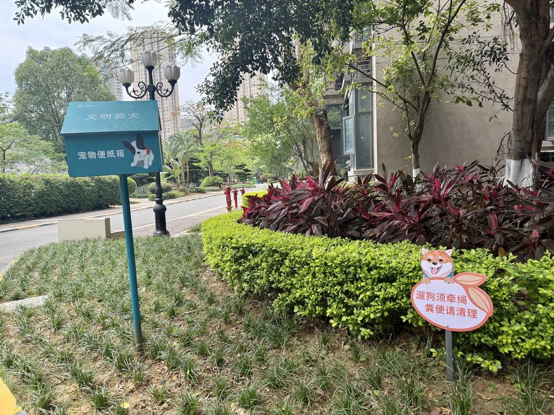记者在涉事小区走访时发现,在小区绿化处、各楼栋一楼等地,均张贴着关于文明养宠的提示。其中,4月12日,该小区物业张贴了关于饲养宠物的温馨提示,其中,明确提及,“宠物(尤其是犬只)出入公共区域时,请务必为犬只戴束缚链和口罩,并且由成年人牵领、看管,以免伤及他人。”