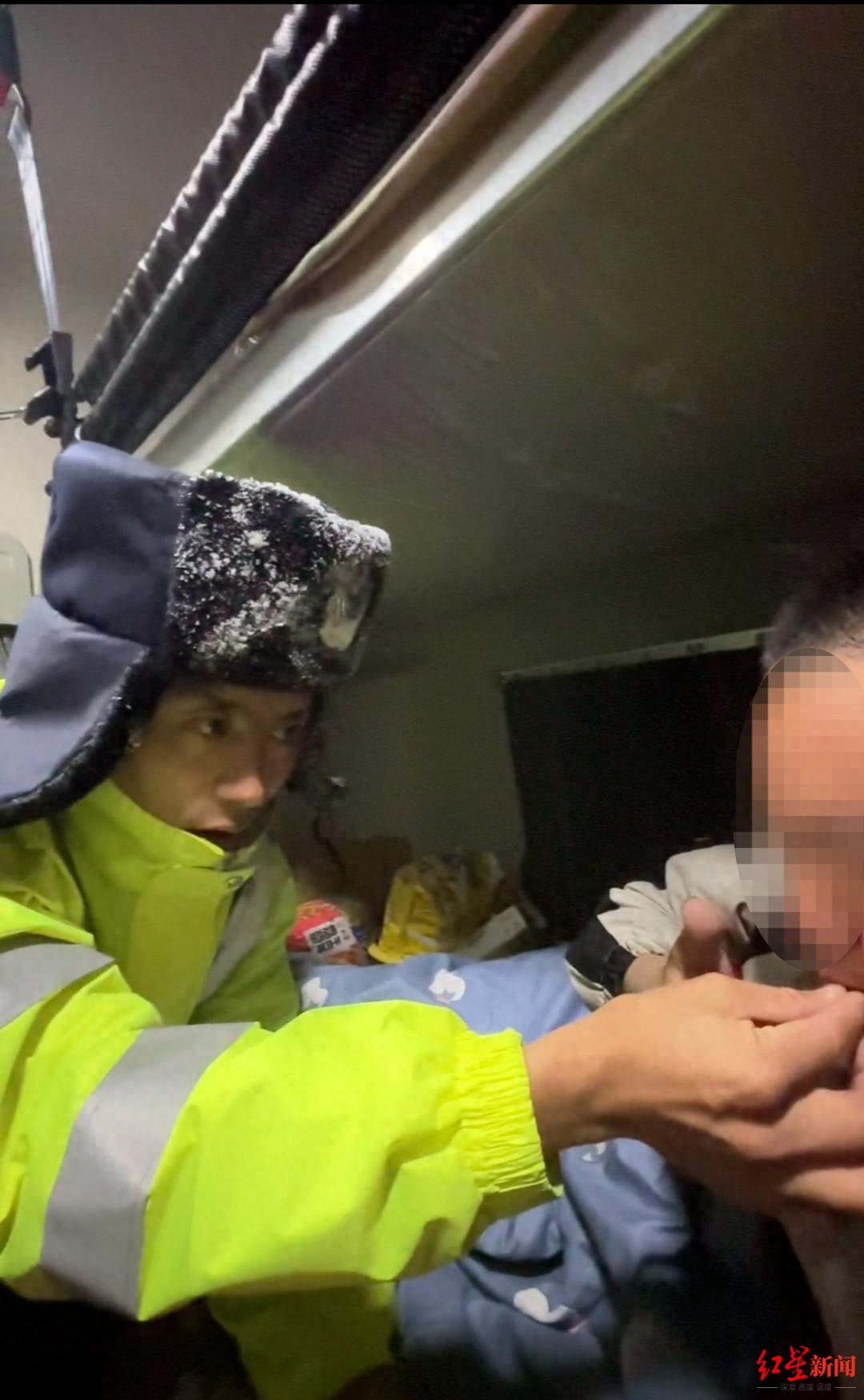 参与救援的辅警才旦周告诉红星新闻记者,当晚5名民辅警抵达现场后,随即挨着敲开车门询问路上司机是否需要帮助,以便为司机提供开水、面包,以及药品、氧气袋等。
