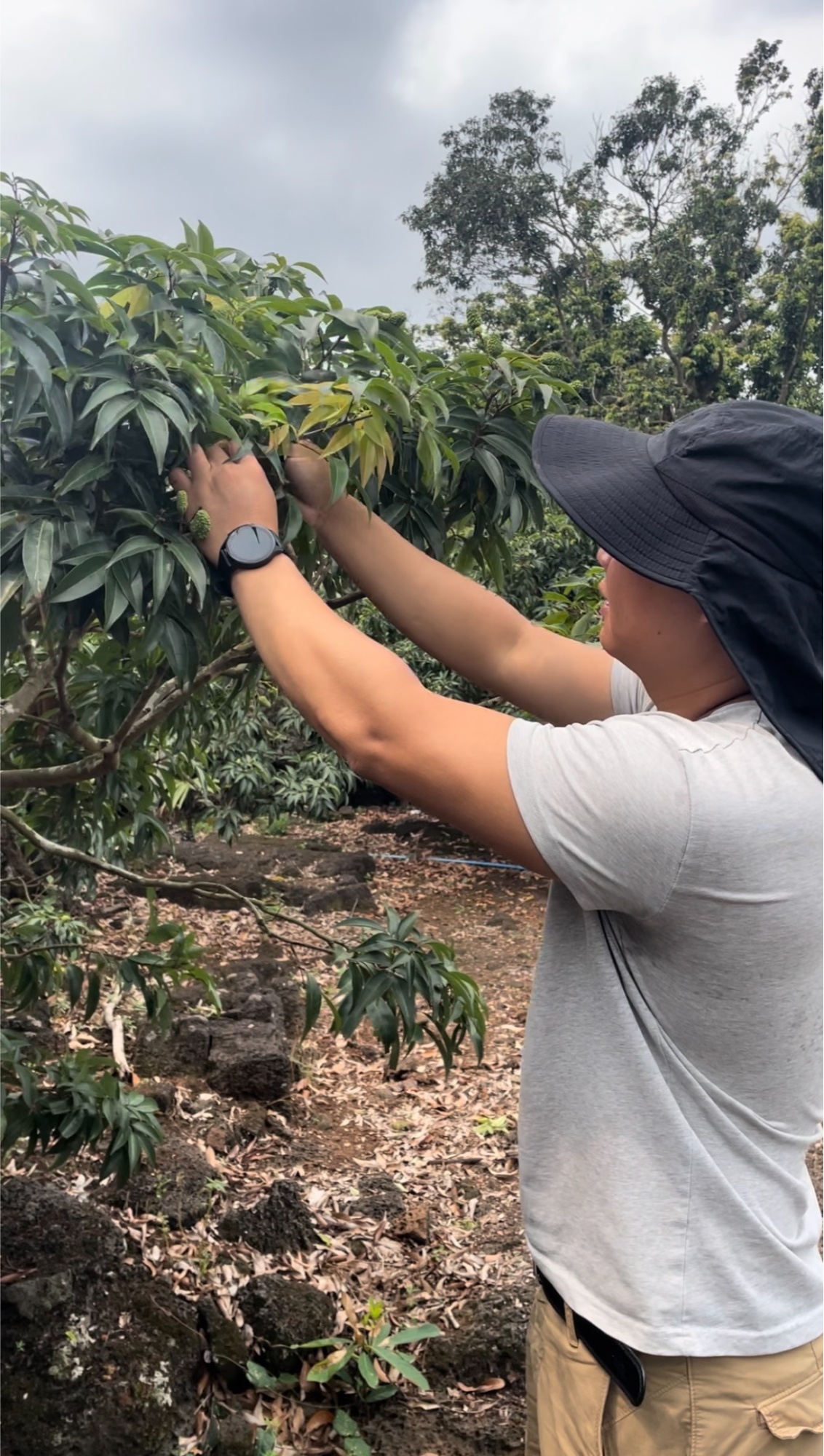 环绕着他的,是他的28亩荔枝林,枝头挂着拇指大小的青色荔枝果。