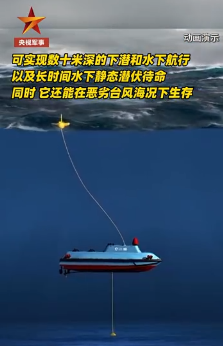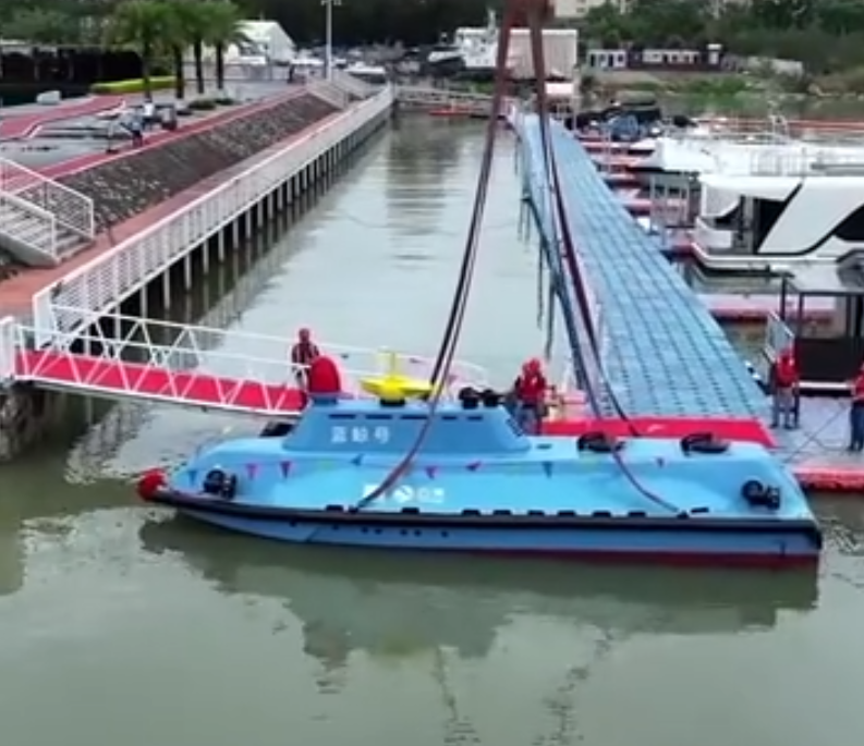 “蓝鲸号”无人艇水面航速36节,水面续航可达数百公里,还可实现数十米深的下潜和水下航行,以及长时间水下静态潜伏待命。