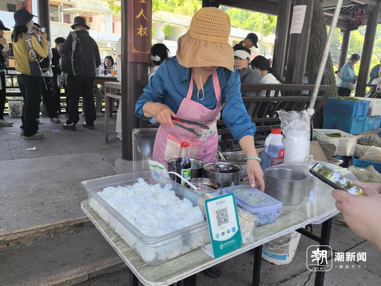 “这还不是最忙的时候,人多的时候连说话都没工夫。”王大哥原本在村里经营一家面馆。因为库区建设,他们一个多月前搬到镜岭镇上居住,周末和节假日才会进村摆摊。