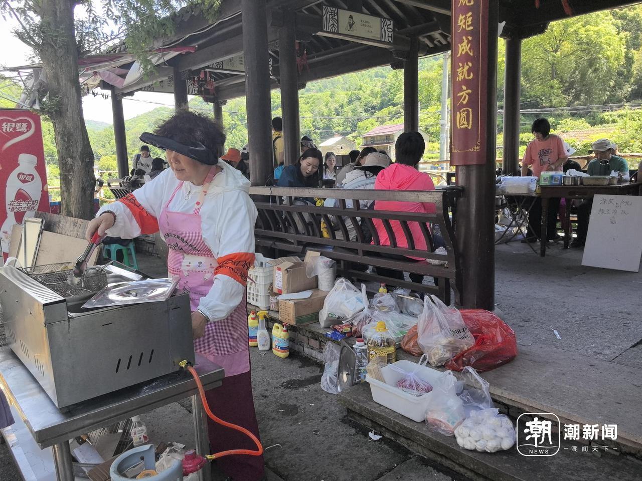 “忙不过来,根本忙不过来。”小泉溪村村民王大哥和妻子在村中老街旁的法治长廊支起炸串小摊,几分钟就卖出5根炸年糕。