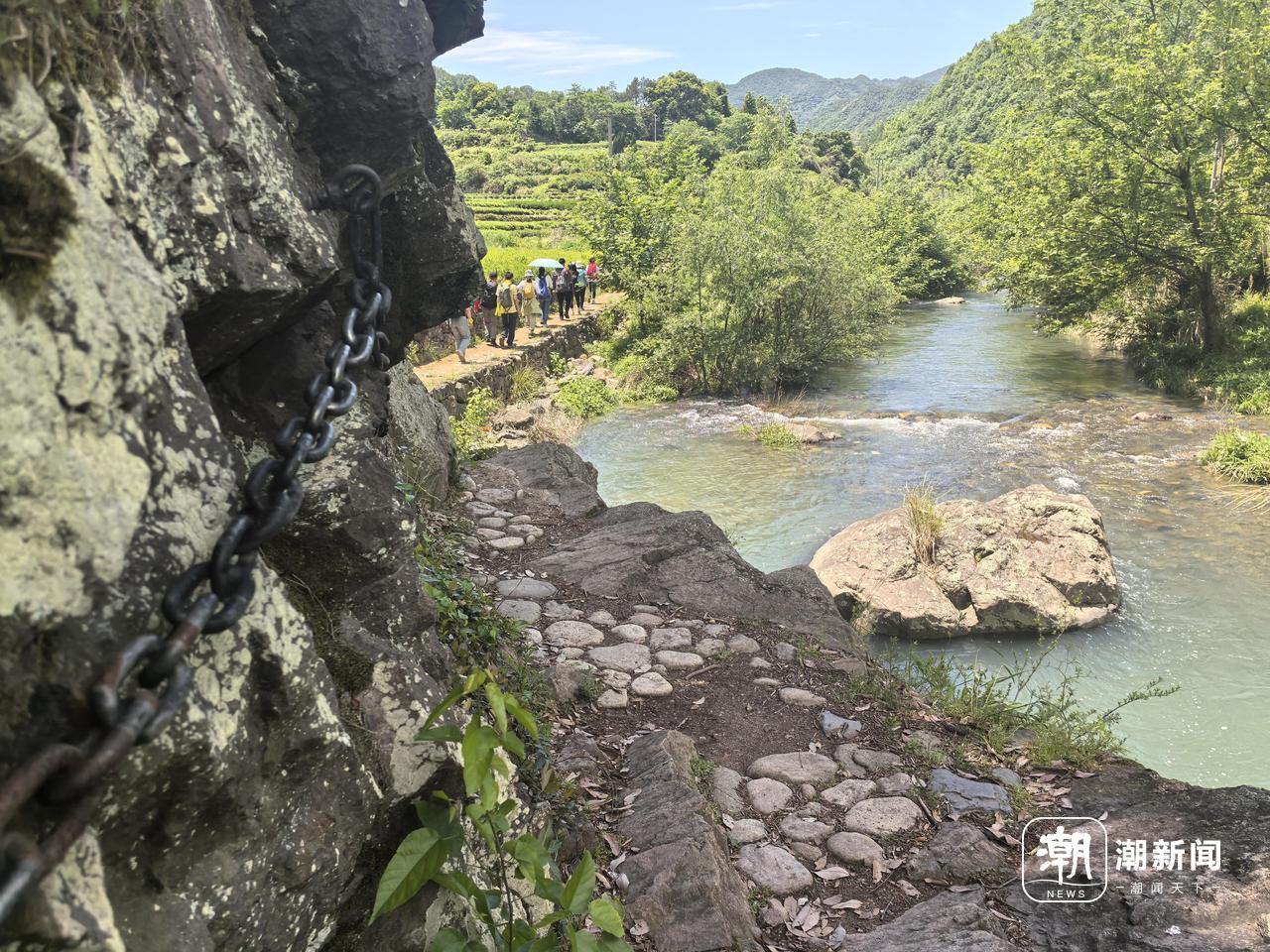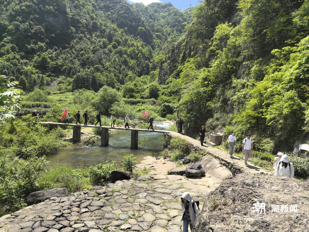 在他看来,安山古道火出圈,最开始是因为可以沿着古道一路溯溪玩水,加上道路平坦,人少景美,适合亲子游玩。“现在叠加了告别游的热度,来的人越来越多。最近几次报名都是满额,上海那边一个团就有一百多人报名。”