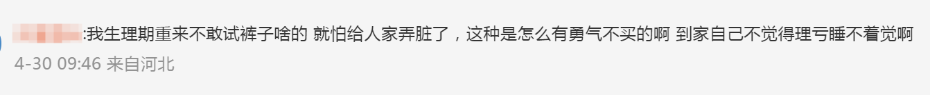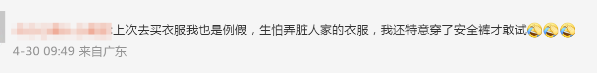 还有网友表示,自己来例假的时候很担心会弄脏衣服,避开试穿。