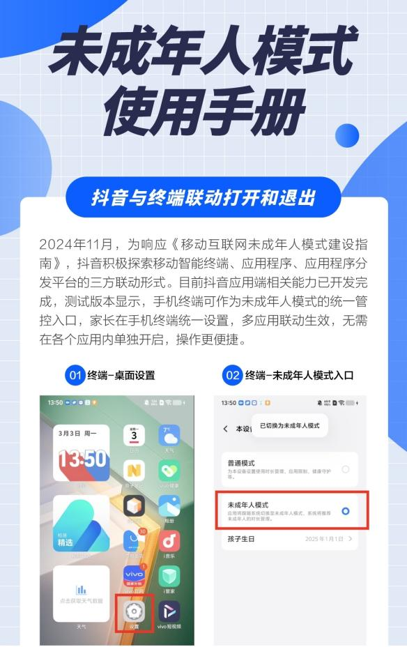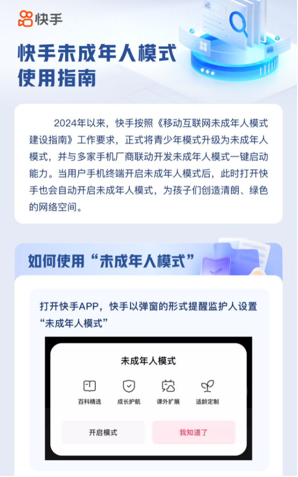 落实《未成年人网络保护条例》要求,国家网信办制定发布《移动互联网未成年人模式建设指南》,指导智能终端厂商和重点网站平台共同推进未成年人模式建设工作。