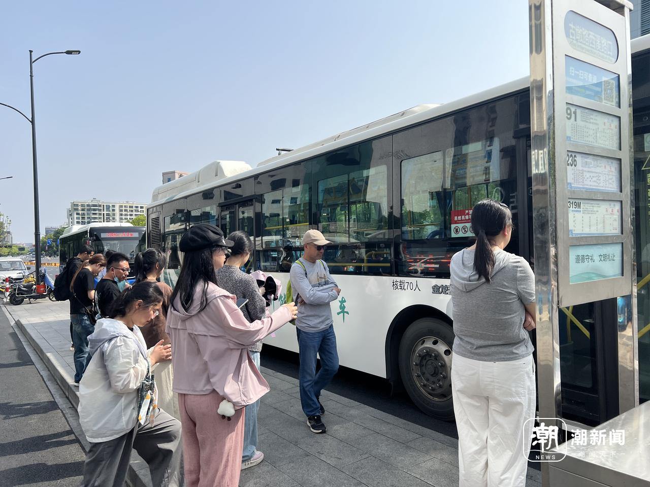 上午9点,记者来到了古墩路西溪路口,准备乘坐公交车进景区,站点上站满了人,大部分都是去灵隐景区的游客。