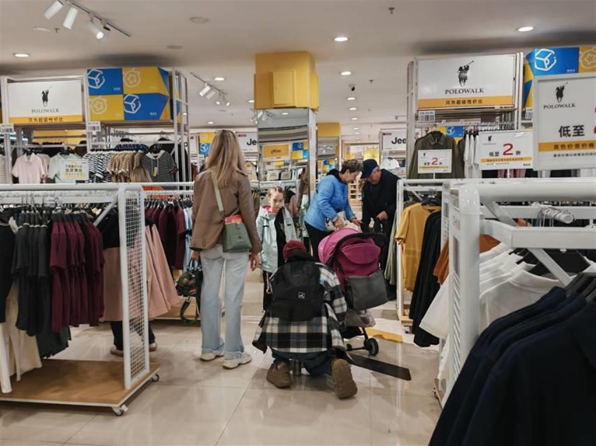 俄罗斯游客在商场挑选衣服