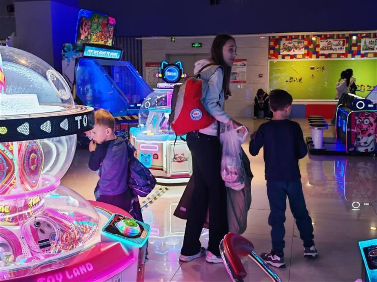 俄罗斯游客带孩子到游乐场玩耍