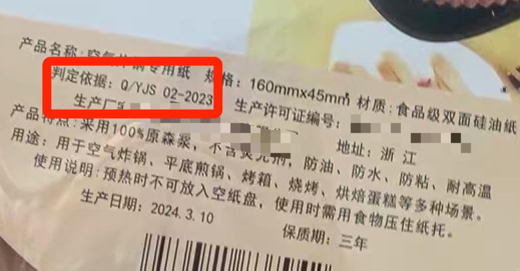 确定产品不是“三无”产品之后,建议大家着重看硅油纸的执行标准。