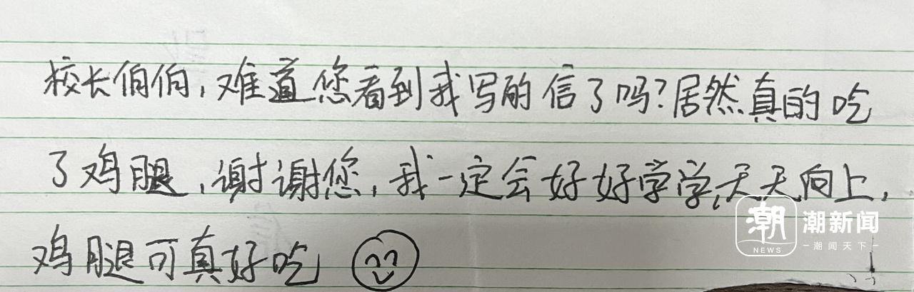 “校长伯伯,难道您真看到我写的信了吗?居然真的吃到了鸡腿!”最近,浙江衢州江山市贺村第一小学的“悄悄话驿站”收到了一封特别的感谢信。