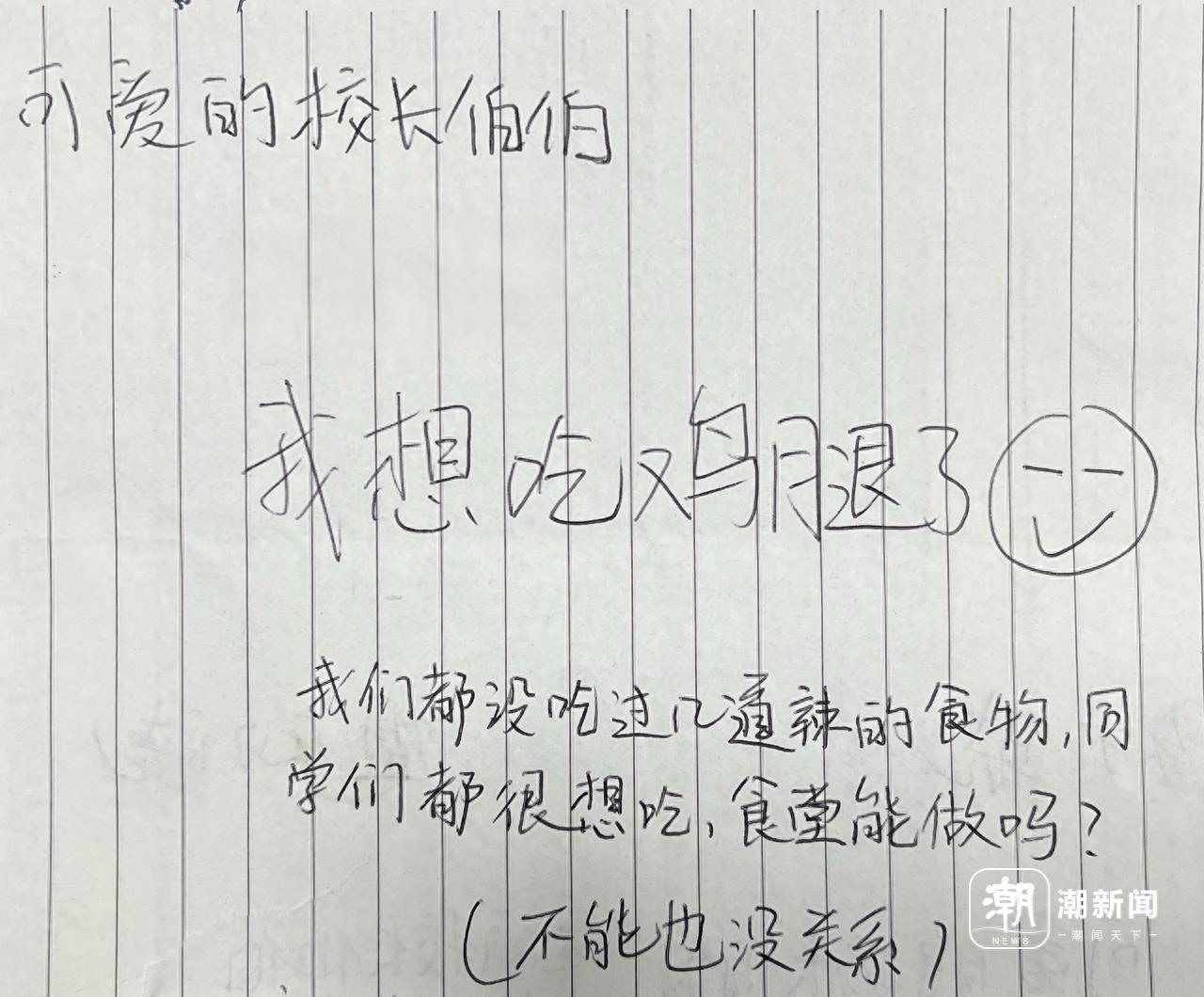 校领导看到后当即拍板:做一顿鸡腿满足孩子的心愿。