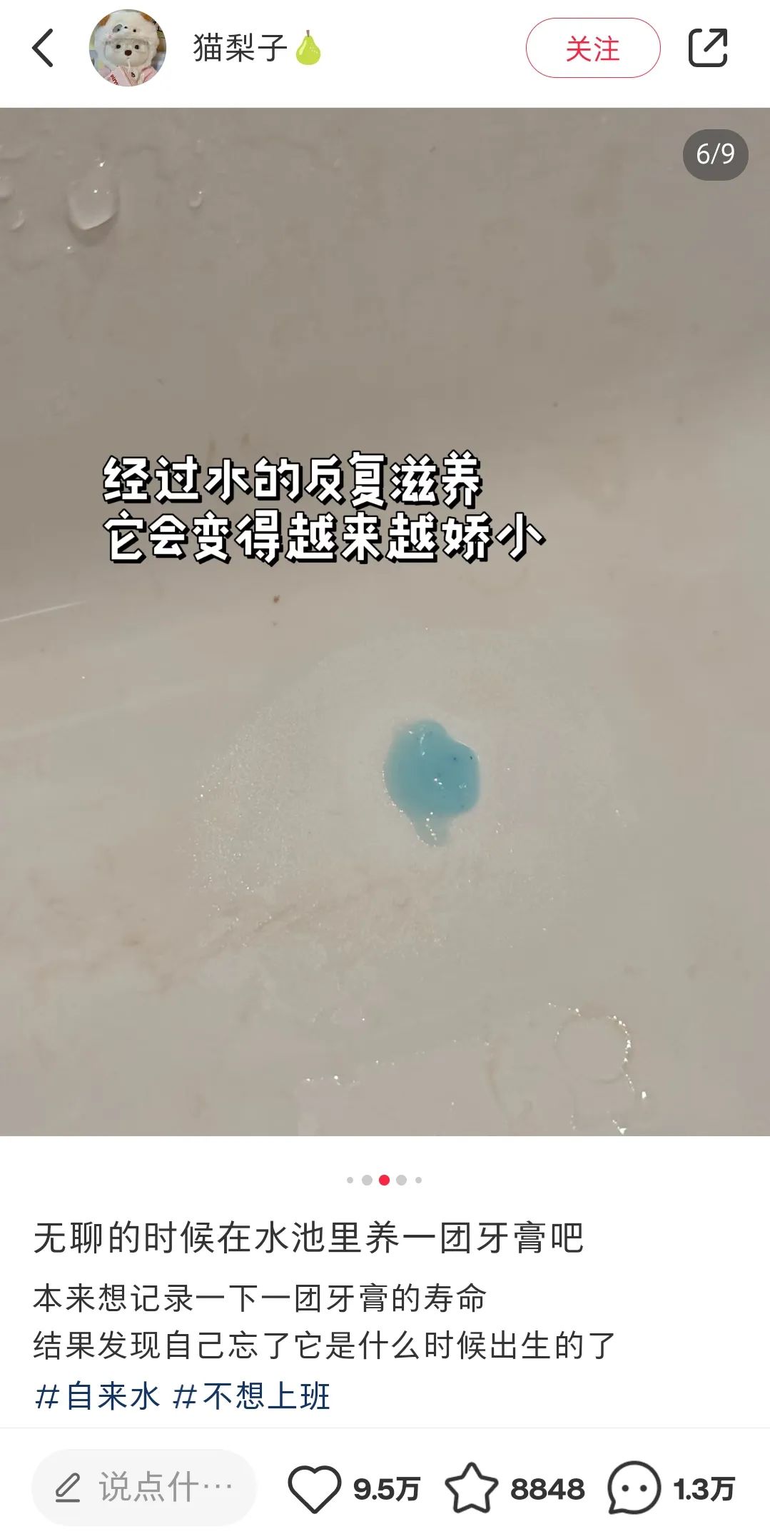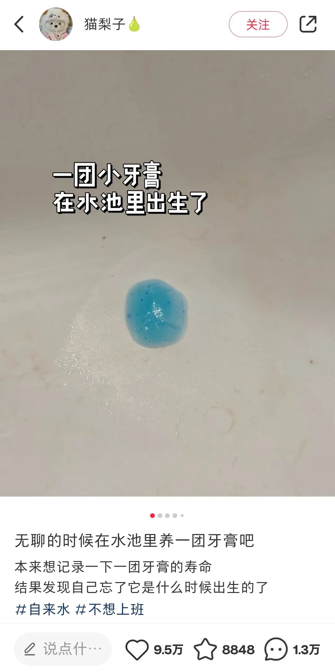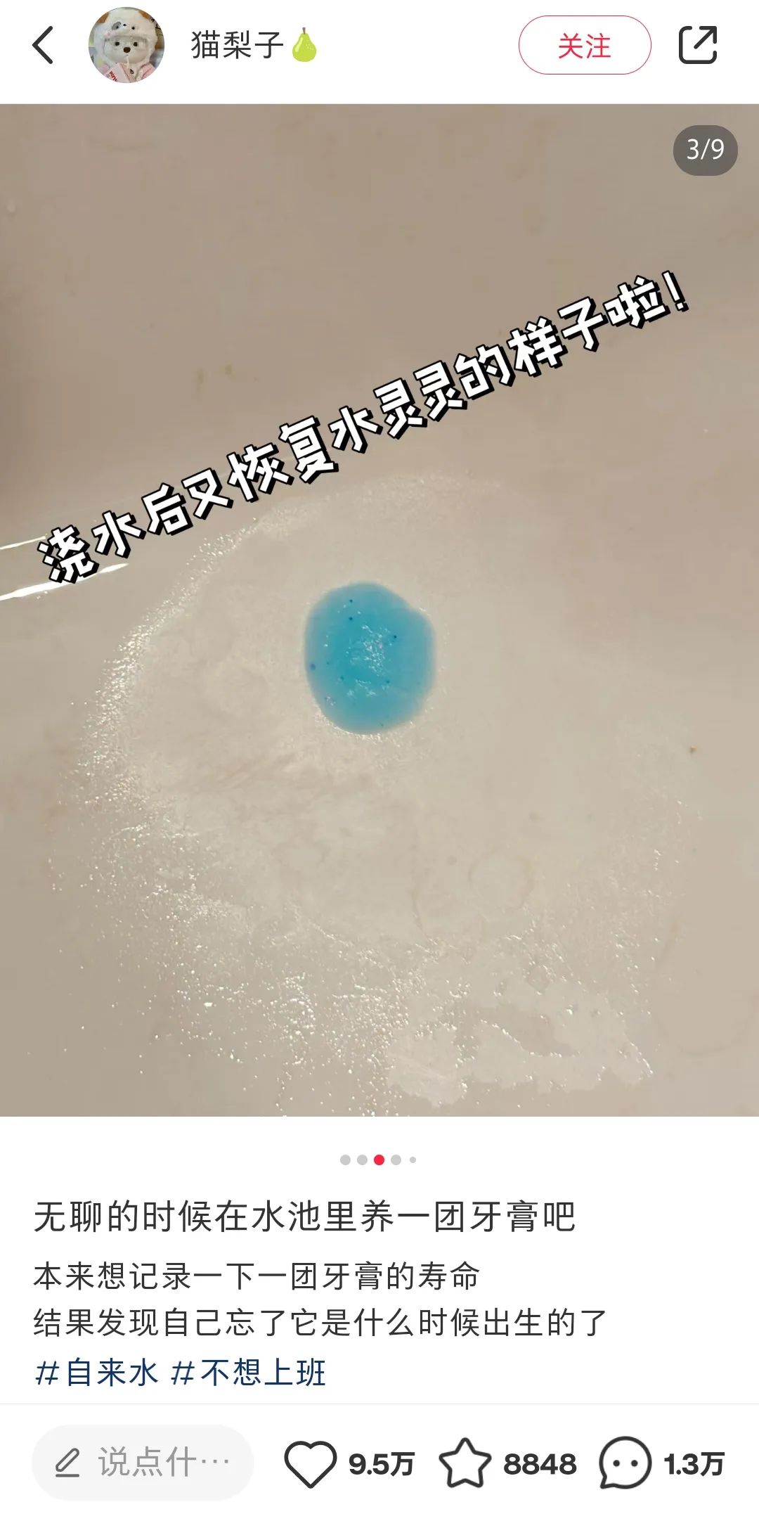除了养酵母外,还有年轻人分享养牙膏的经历,其“饲养”方式同样简单,每天补充水分即可,这篇帖子吸引了近10万人点赞,评论量高达1.3万条。