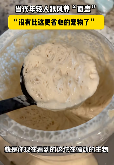 酵母通常能存放很长时间,主打一个“陪伴”够久。一位养酵母的深圳网友介绍,年轻人养酵母宠物,应该是一种精神寄托。“它是活的,会呼吸,会因为喂养而有回应,虽然不会说话,但是依然能够给予陪伴的感觉。”四川的杨先生家里也养酵母,他的妻子有时会用它做面包,他表示喂酵母的时候很解压。