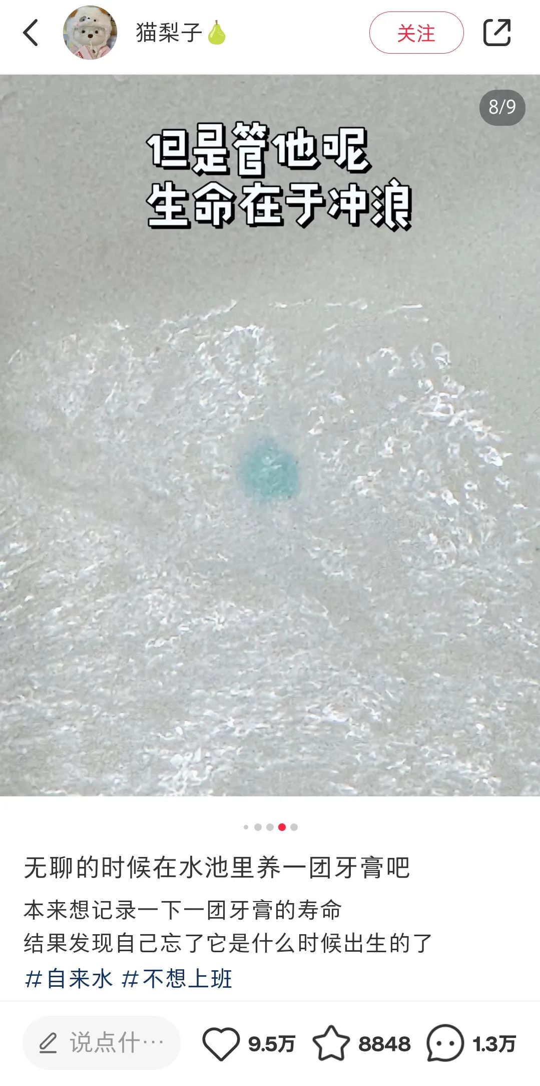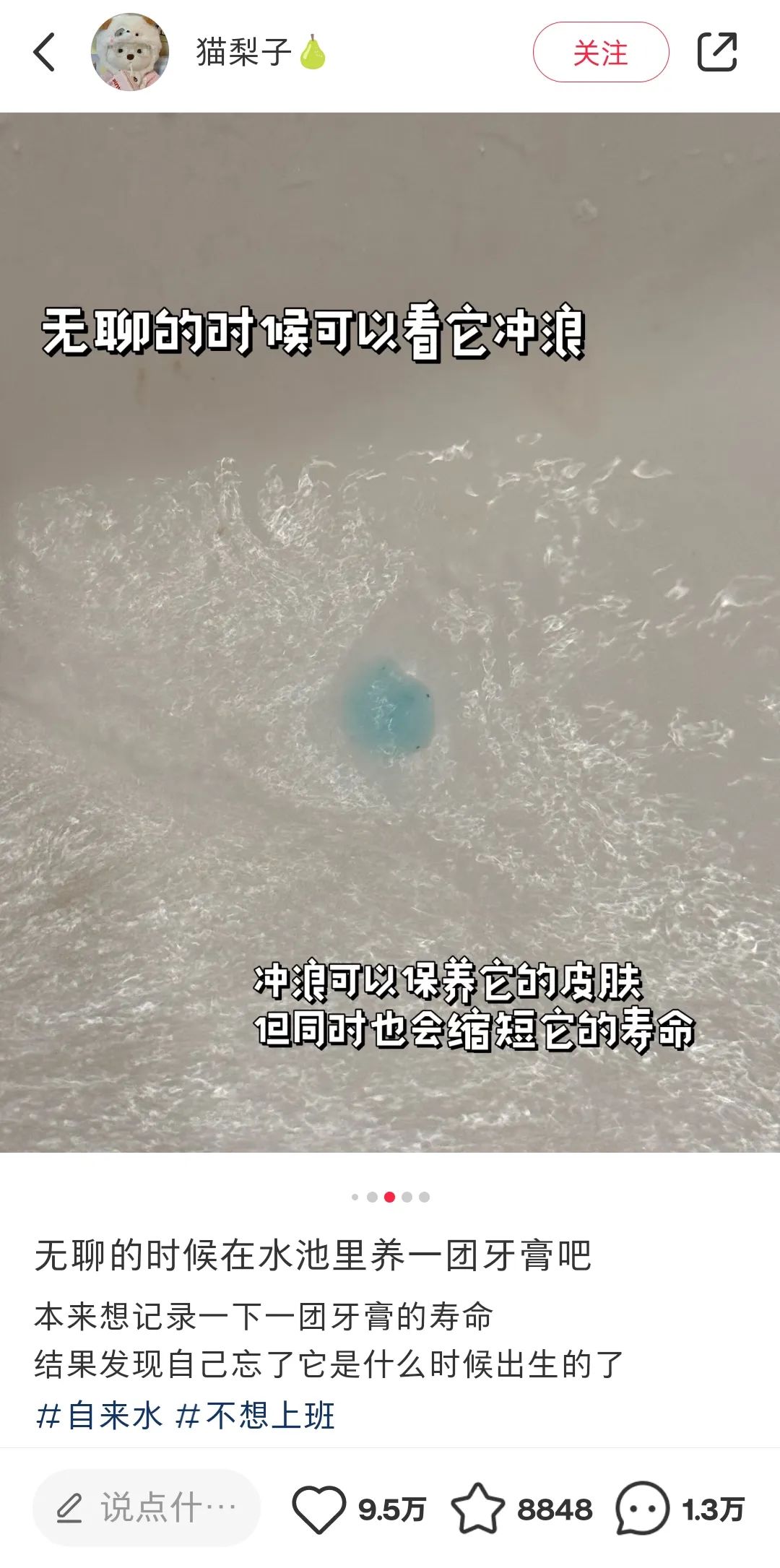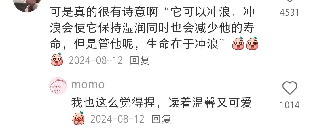 网友表示,喜欢看养牙膏的原因是,在生活细节里看到了人生的哲学,“冲浪可以保养它的皮肤,但同时会缩短寿命”“但管他呢,生命在于冲浪”。