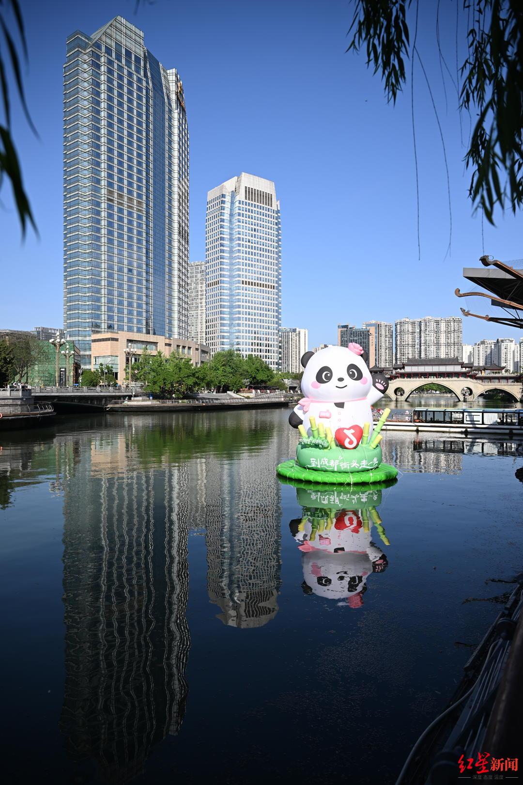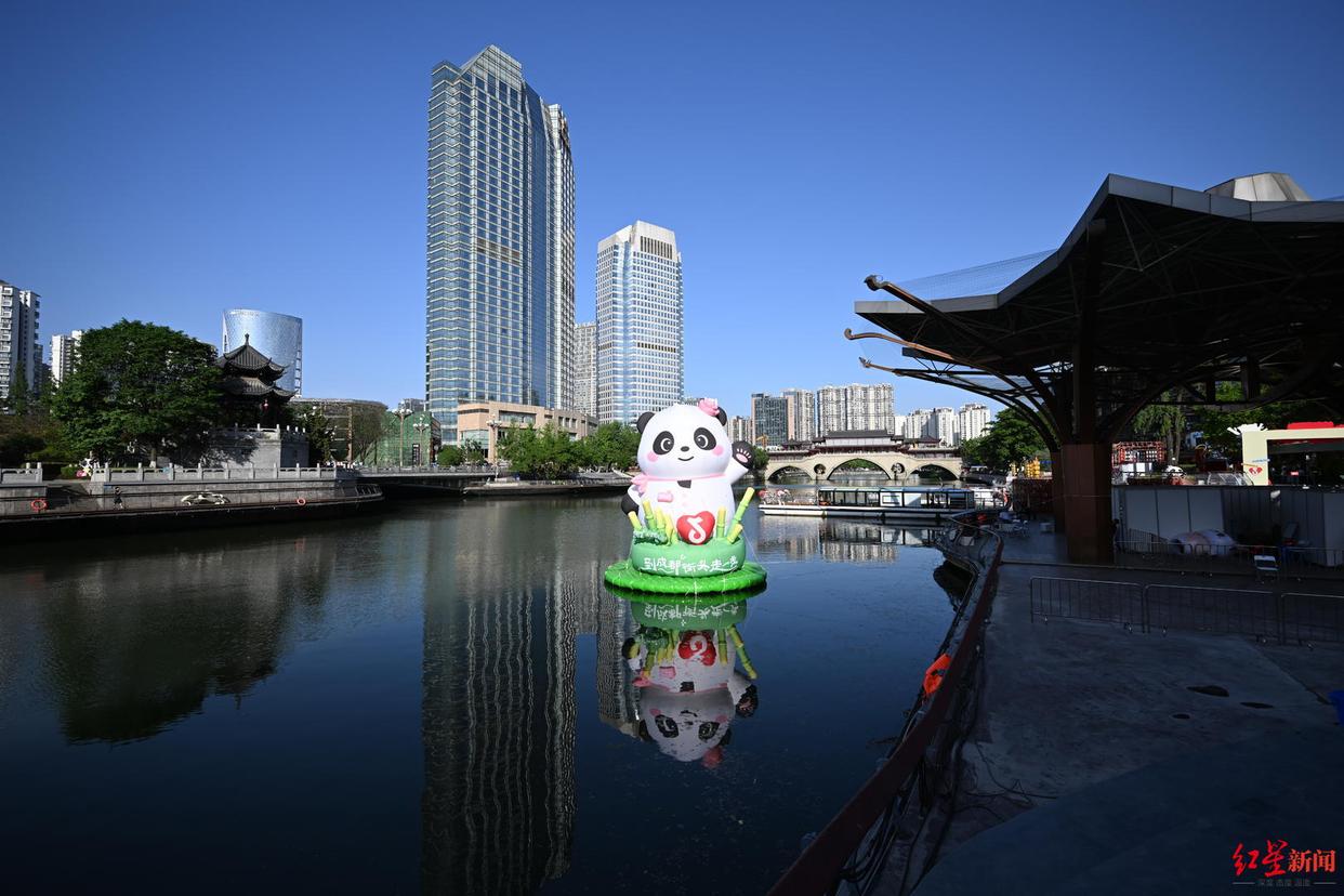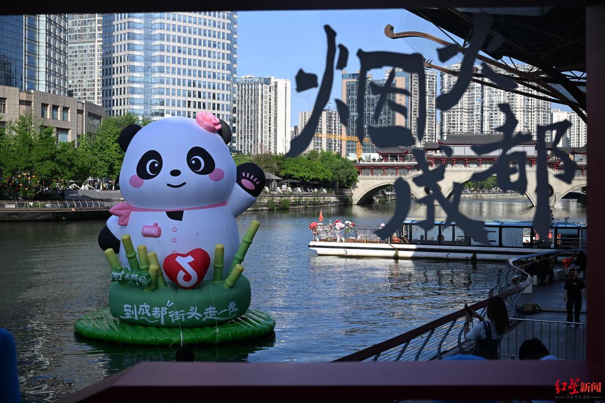 为丰富市民“五一”假期文化生活,欢迎更多的游客朋友来成都拍照打卡,4月30日至5月3日,大熊猫“花花”主题打卡装置在成都府南河音乐公园正式亮相。