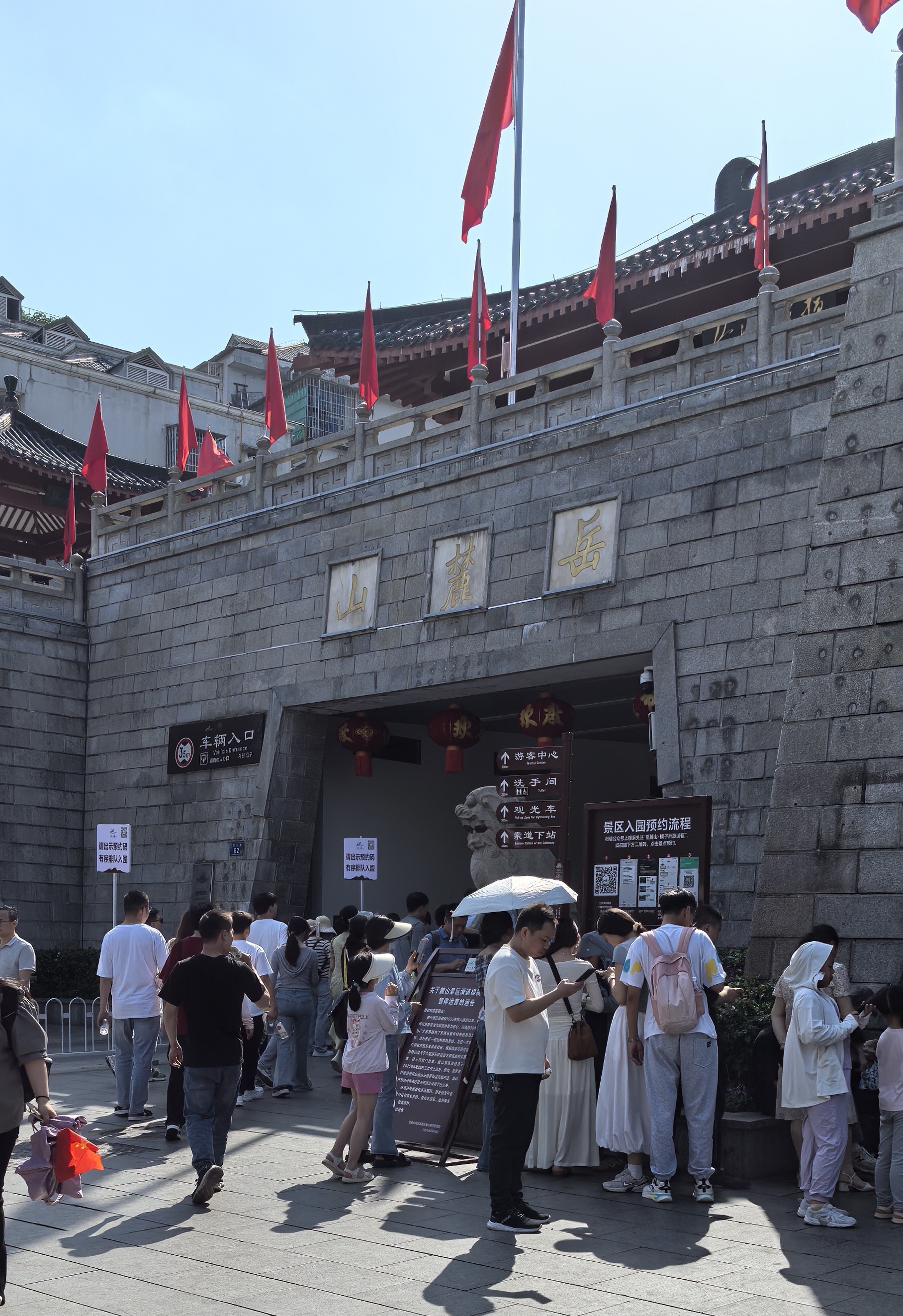下午3点半左右,“强势”的太阳稍微收敛了些,潇湘晨报记者来到位于溁湾镇附近的岳麓山东大门,因该门离索道站较近,不少游客选择从这里上山。