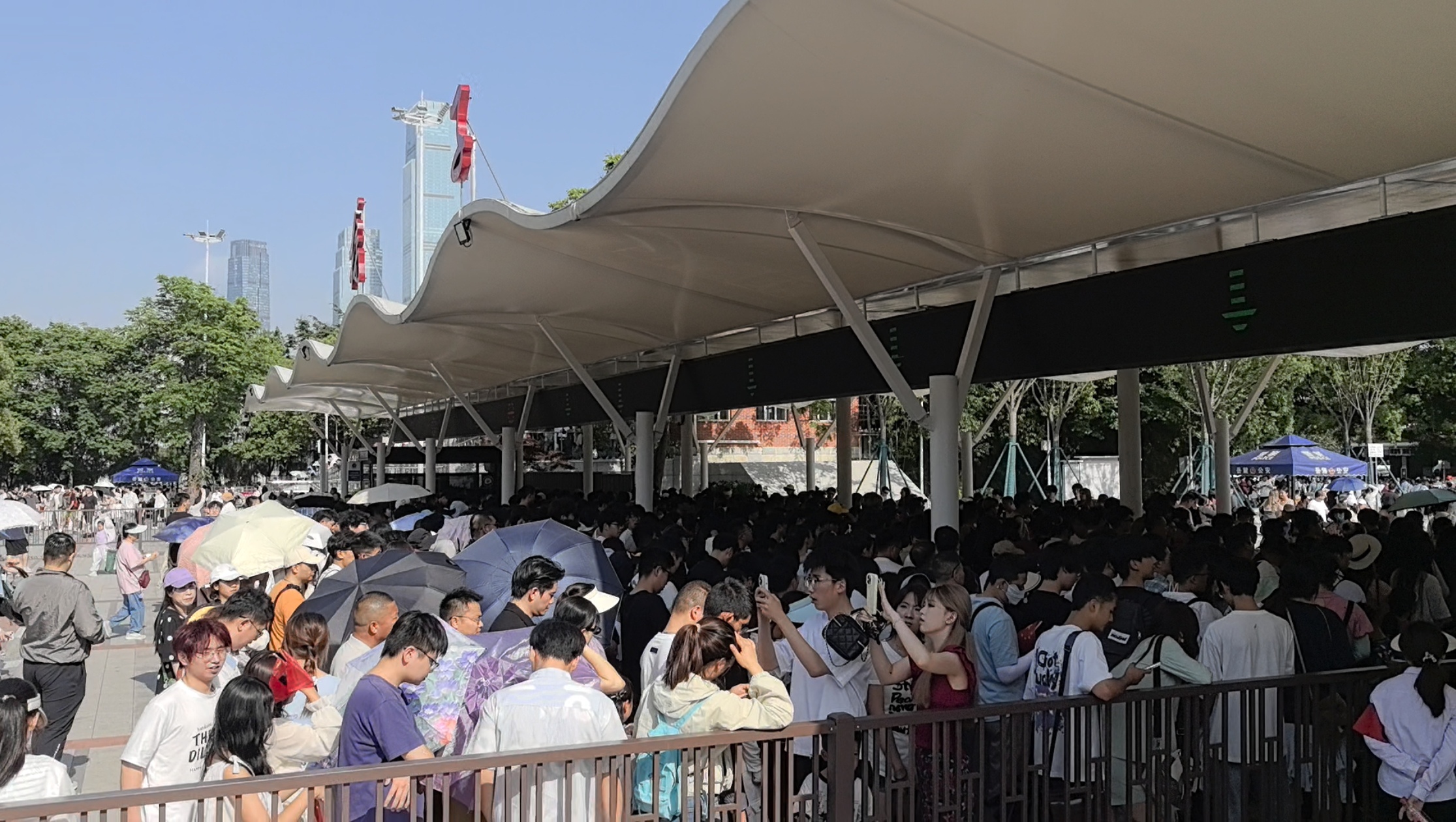 部分在入口前坪等待的游客,因为前一日没有预约到门票,便想着来现场碰碰运气。从江苏来长沙游玩的张先生告诉记者,“我们就没预约到,这里每隔半小时会放一次票,试一试能不能抢得到,抢不到就换个方案,去其他地方先玩。”